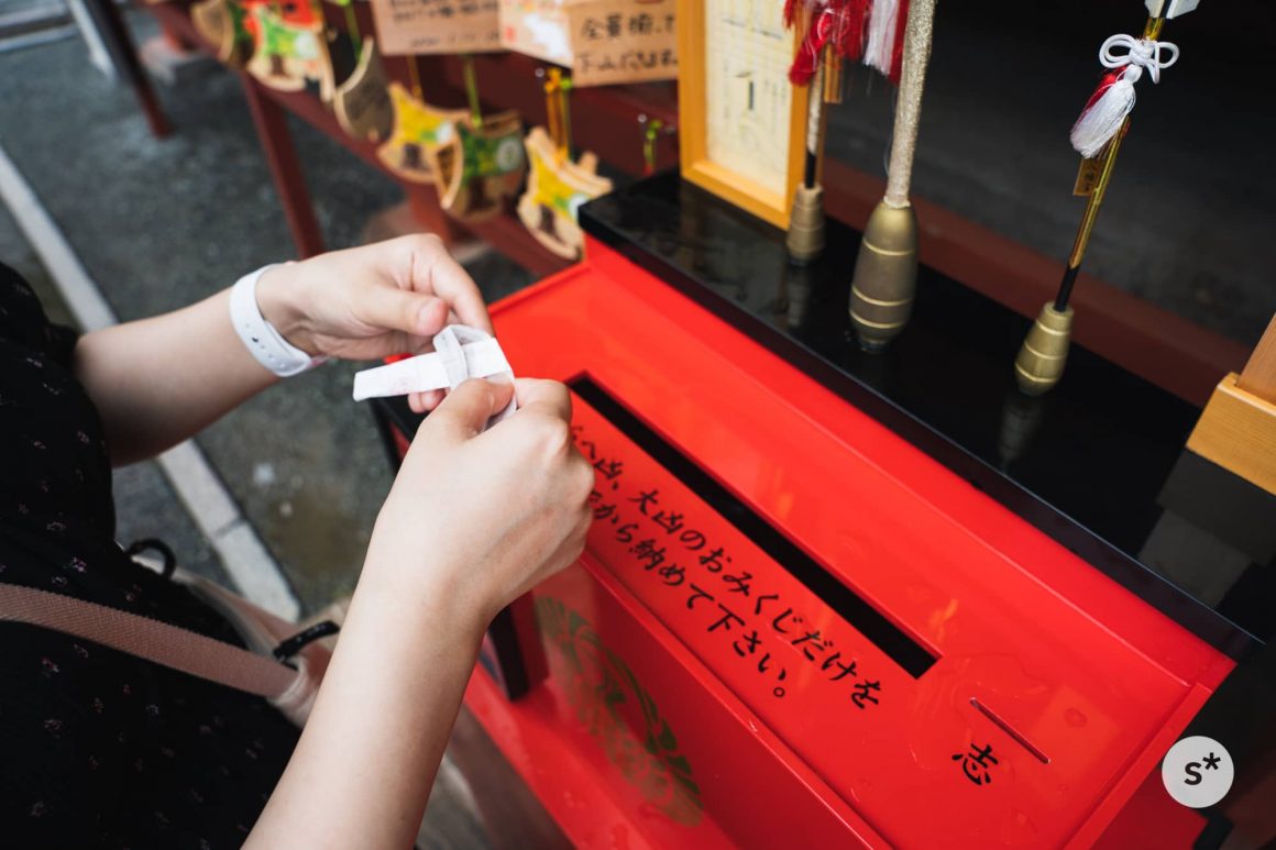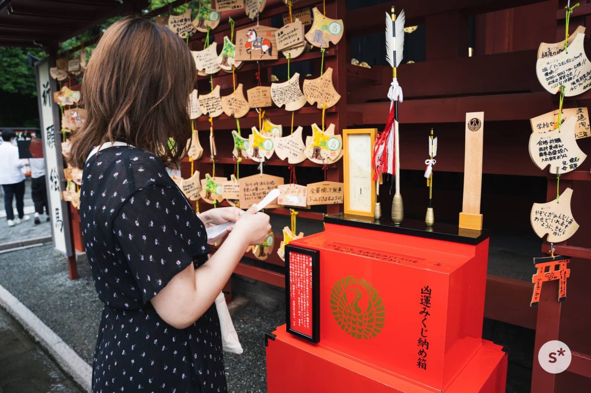凶と大凶のおみくじは、結んで凶運みくじ納め箱に入れます。そうすると、吉と大吉に変わるらしいです。