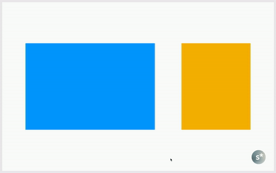 次のスライドで片方の図形だけ入れ替える、というようなシチュエーションで使います。上のような感じで、サイズに合わせて中央に揃えるようなアニメーションです。