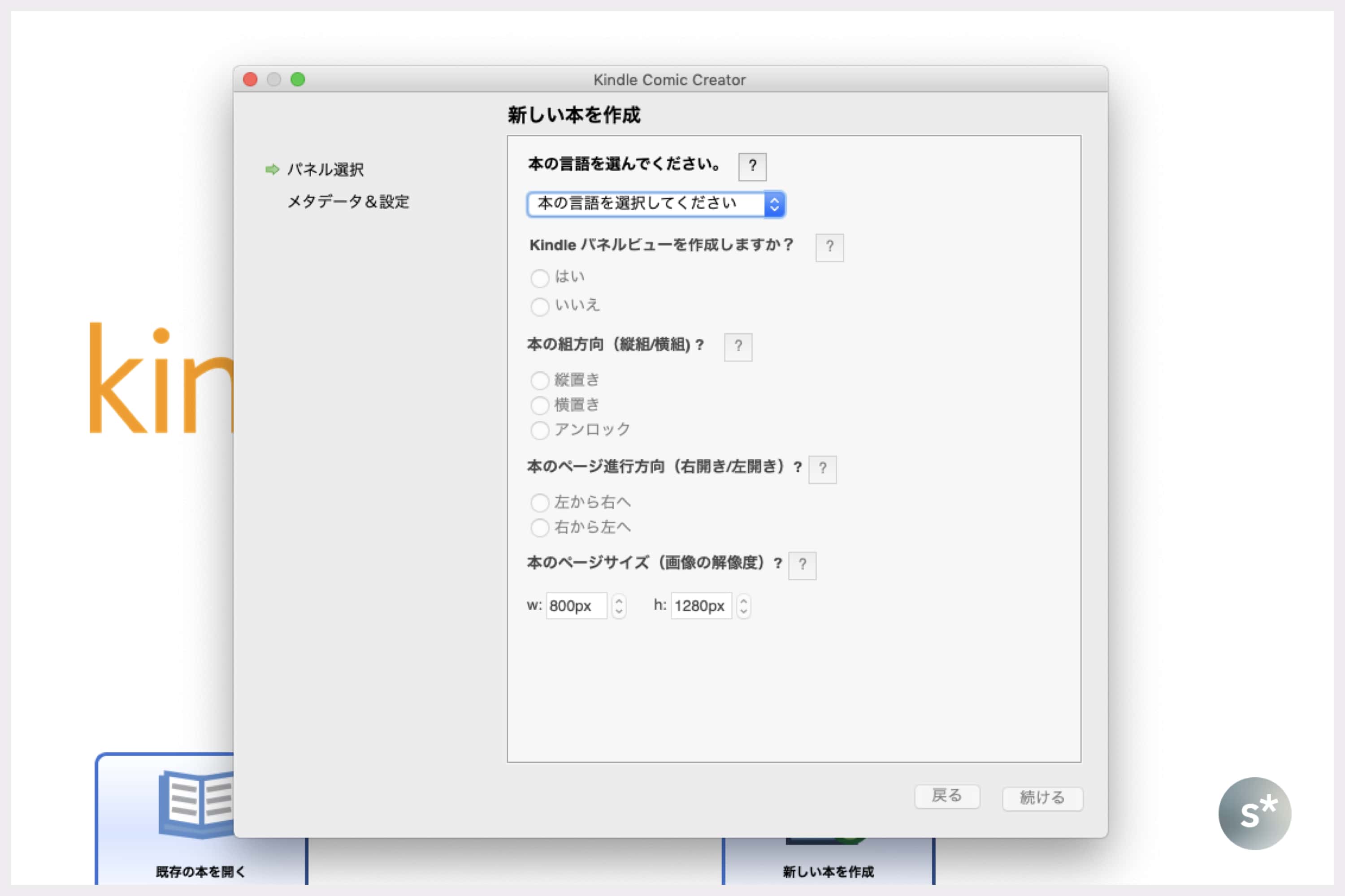 次に、Kindle Comic Creatorを開いて初期設定をします。横書きの場合は右開き(左から右へ)で設定しましょう。画像サイズは長辺1,280pxまでとなっているので、書き出した画像の縦横比に応じて設定してください。
