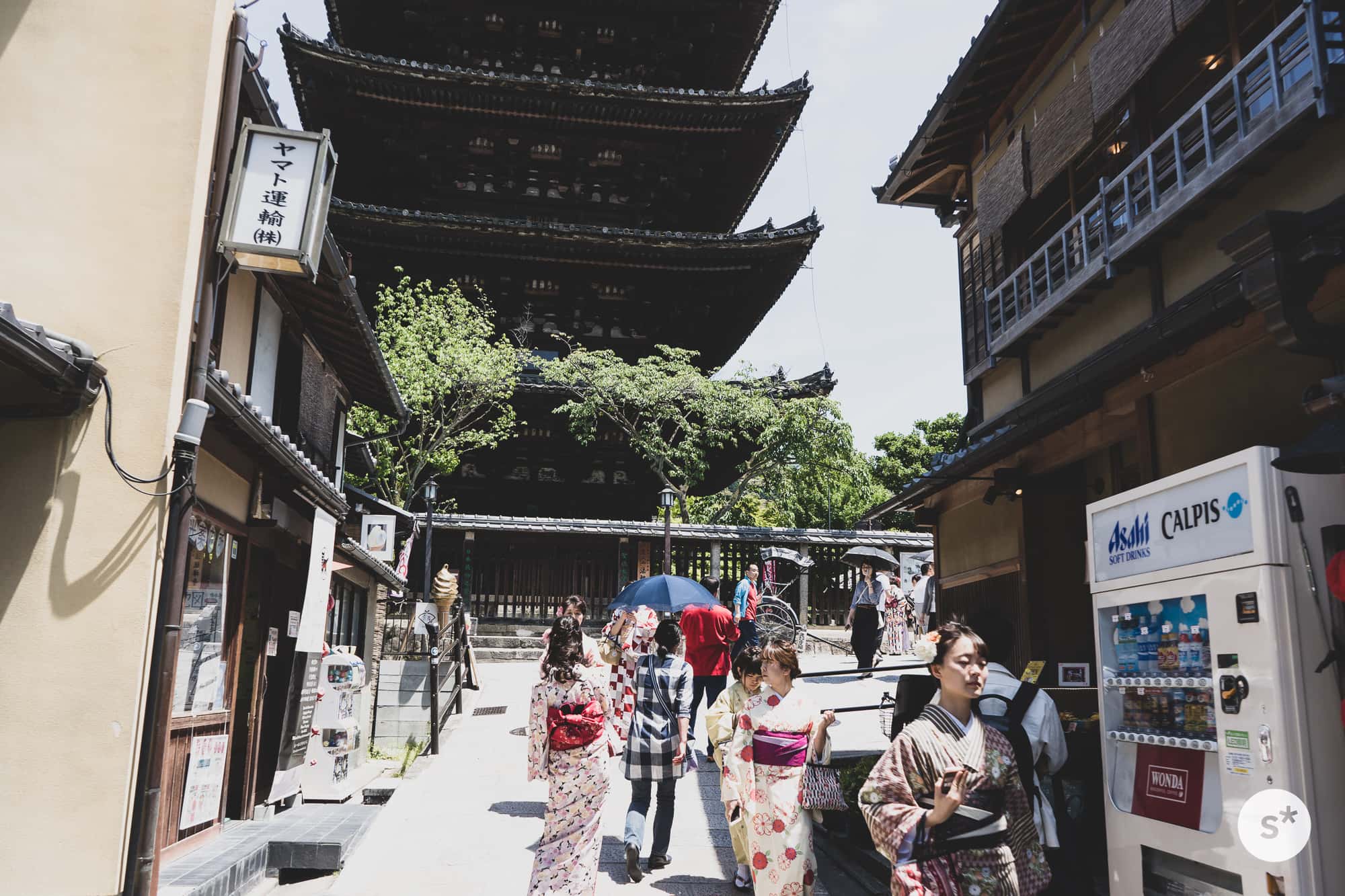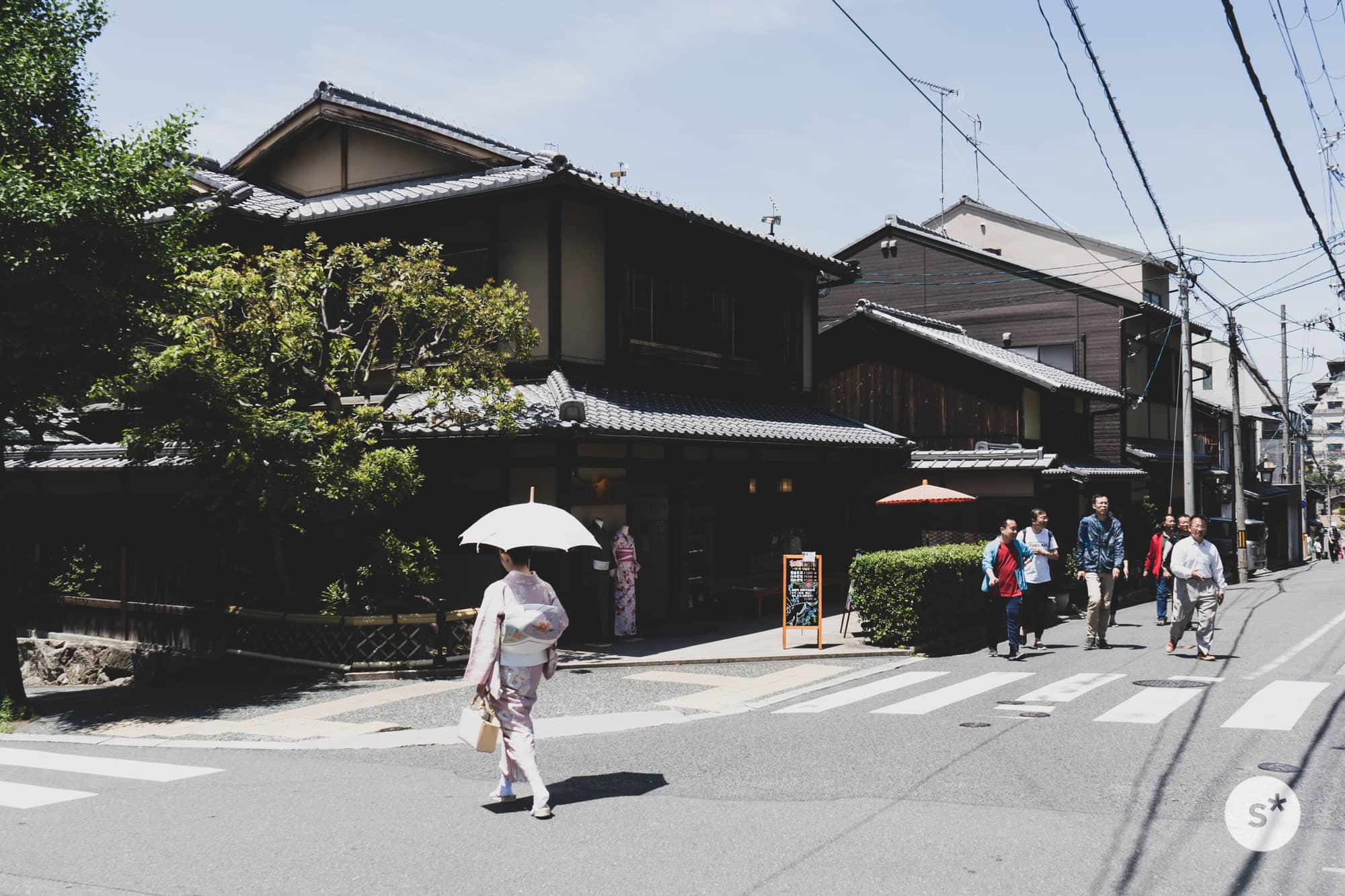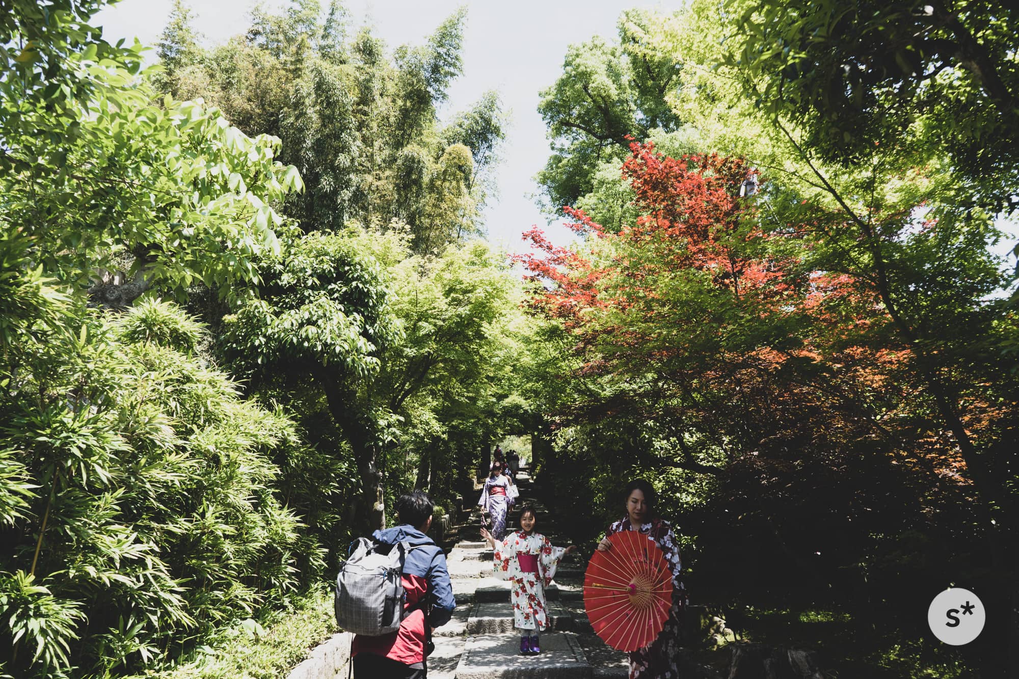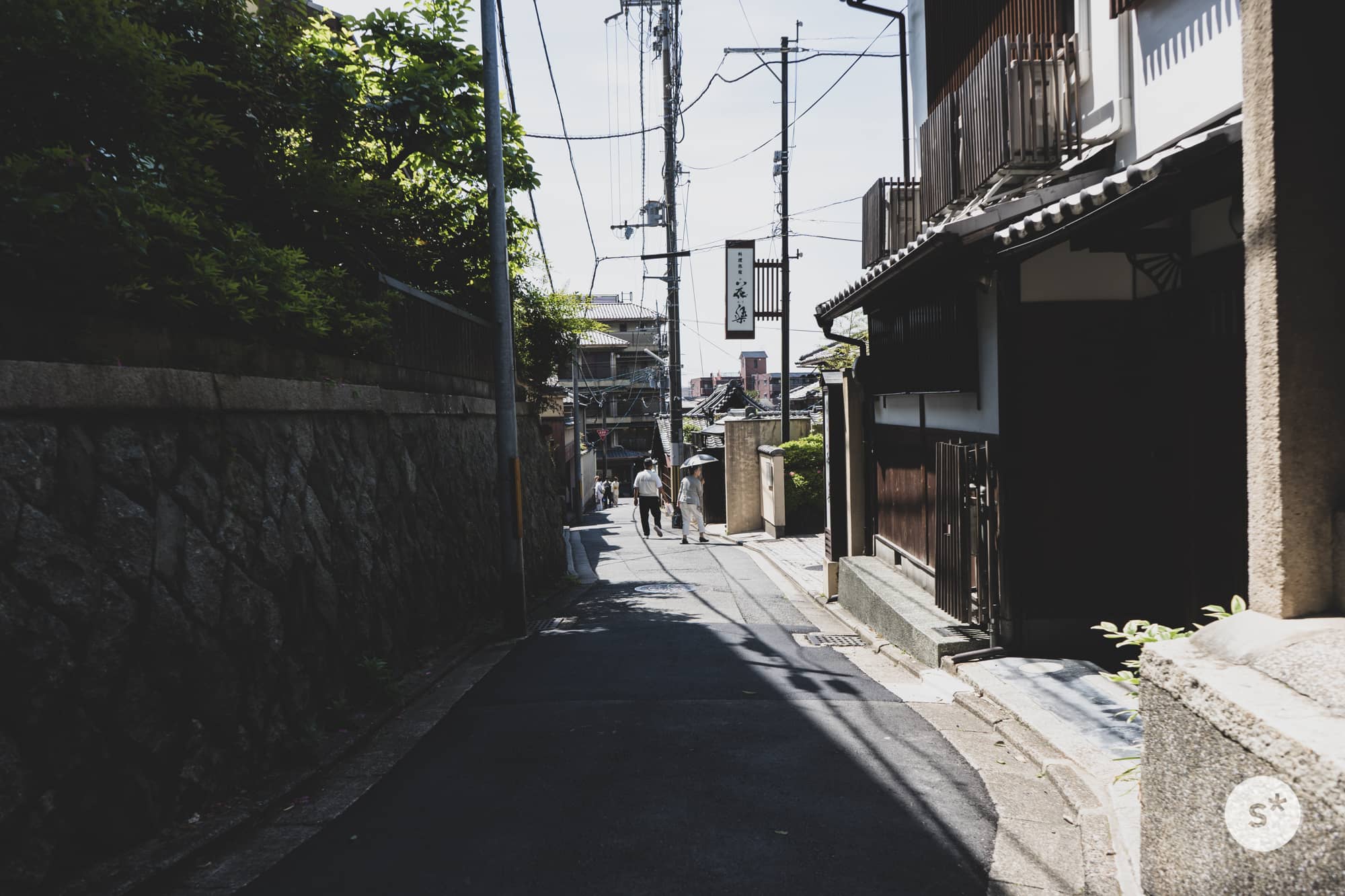 そう言って僕は道を空けると同時に、これはいい画が撮れるんじゃないかという下心が芽生えます。しかも、向かいから着物姿の女性が歩いてくるのもタイミングがいい。