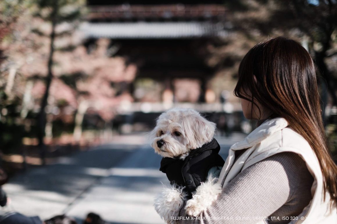 その3日目の観光ですが、義両親が犬と一緒に乗れるタクシーを手配してくれていました。義両親も犬を飼っているから、4人と2匹の京都観光です。いつものように、カメラを片手に巡ってきたので、写真メインでお届けします。