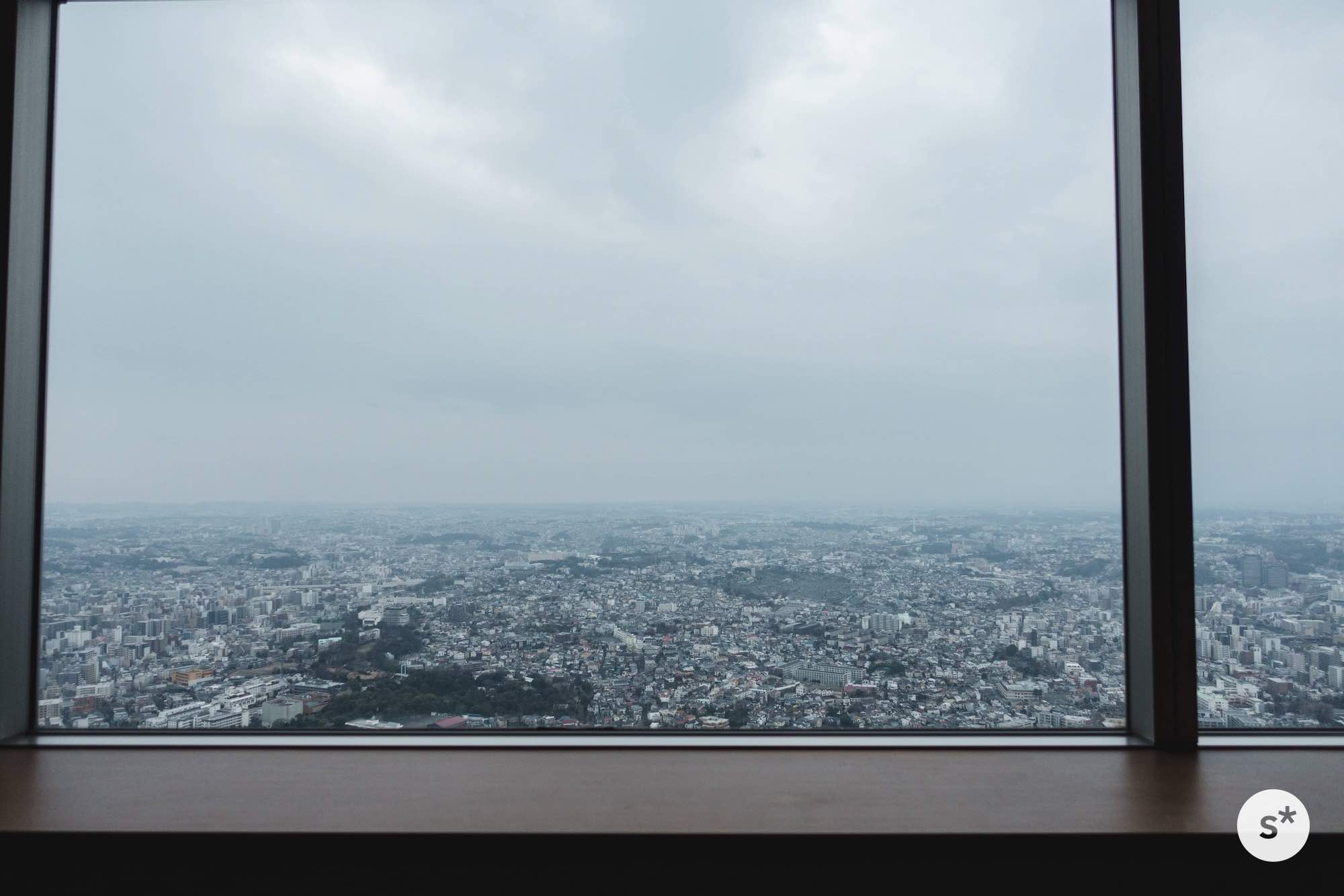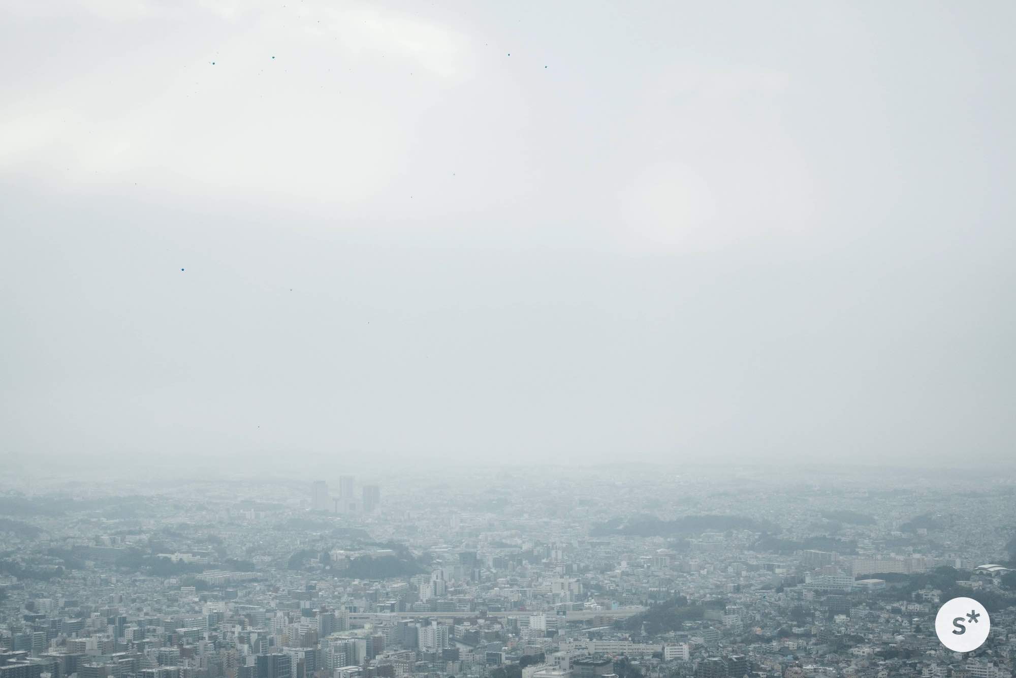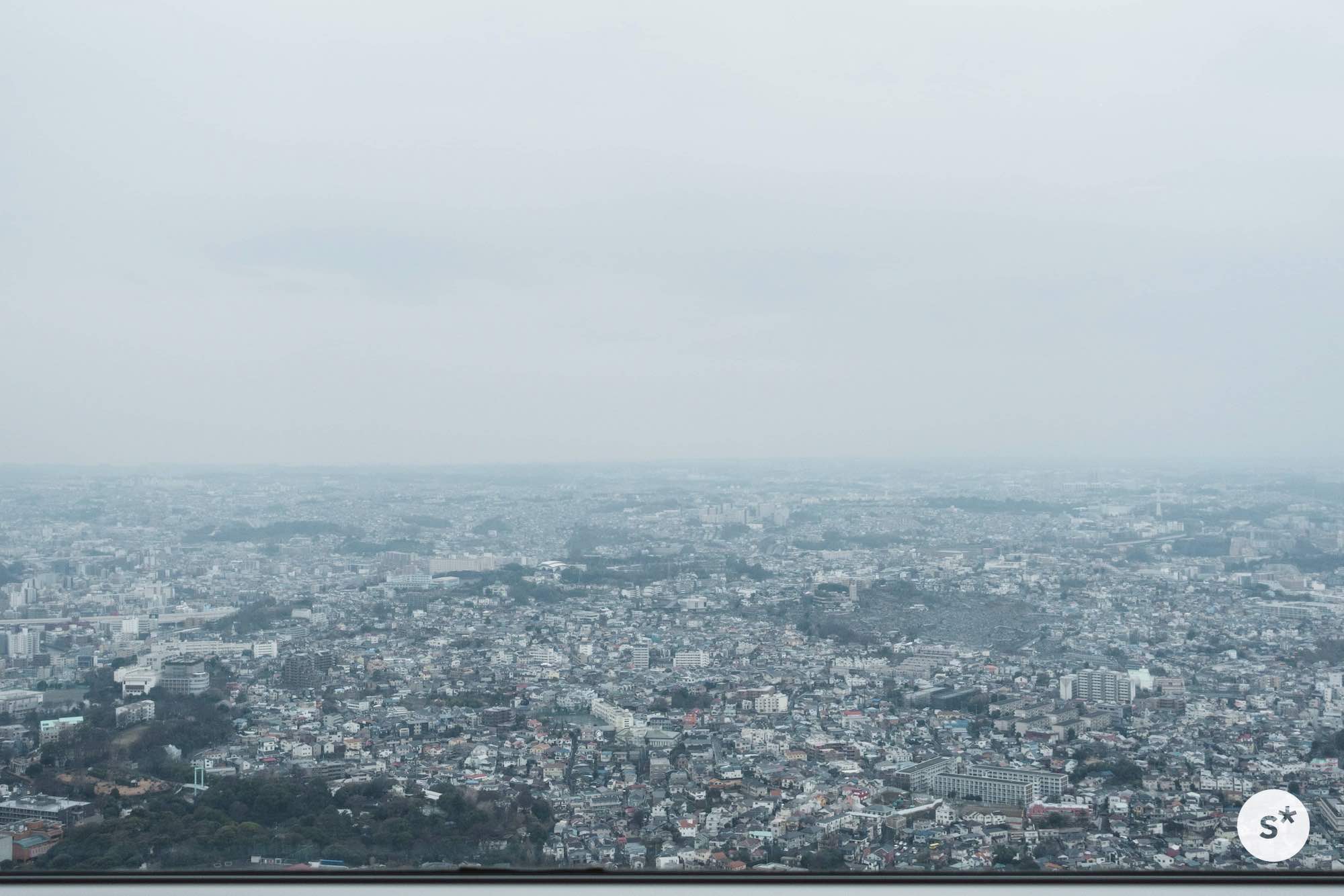 なんと眼下には横浜の街並みが広がっています。おそらく戸塚方面ですが、地平線までしっかりと見えてますね。天気は微妙だったけれど、もともと雨予報だったからむしろここまで見えてよかった!
