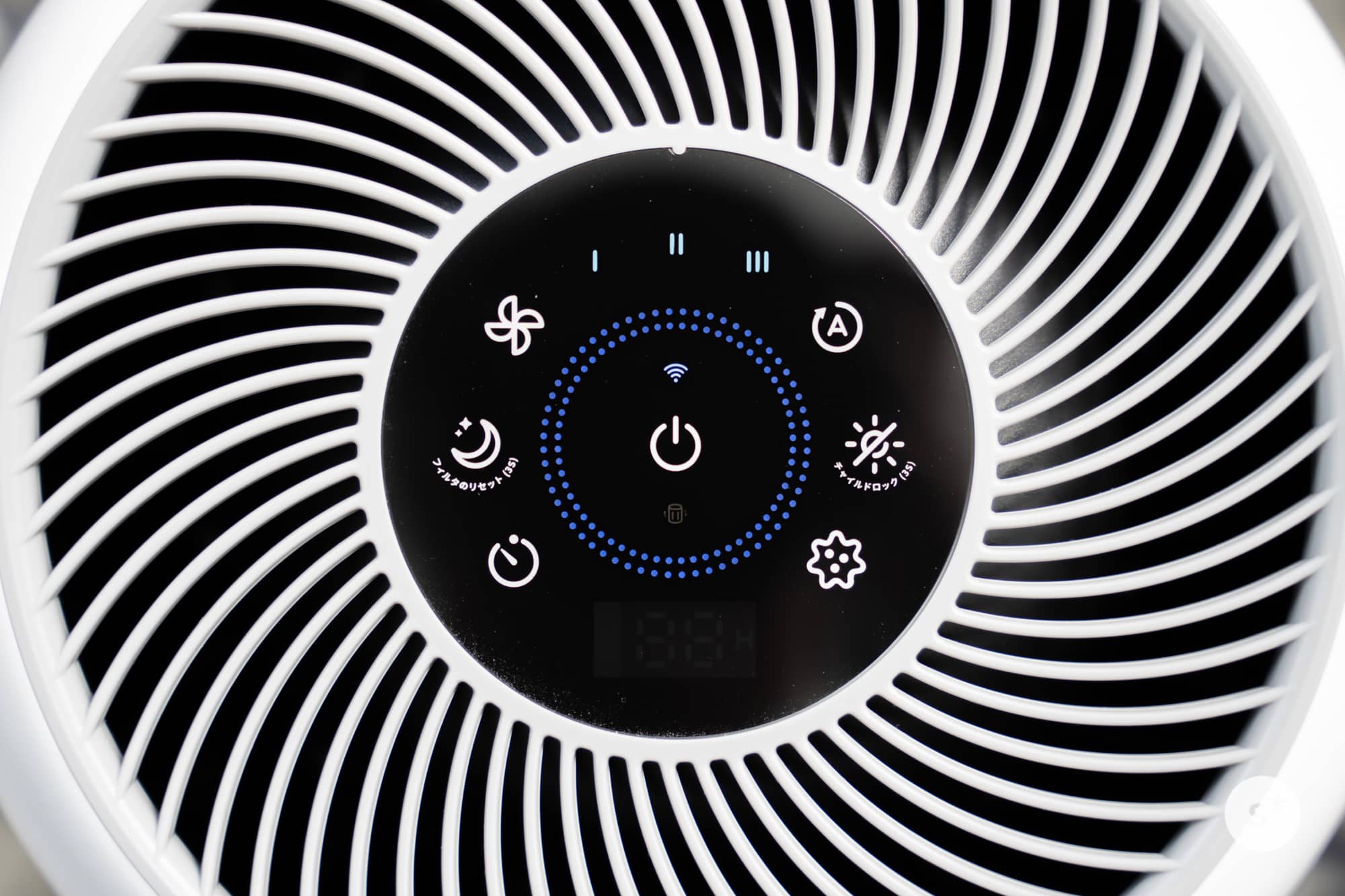 運転モードの切り替えは本体上部のタッチパネルから。後述のスマホアプリからでもOKです。