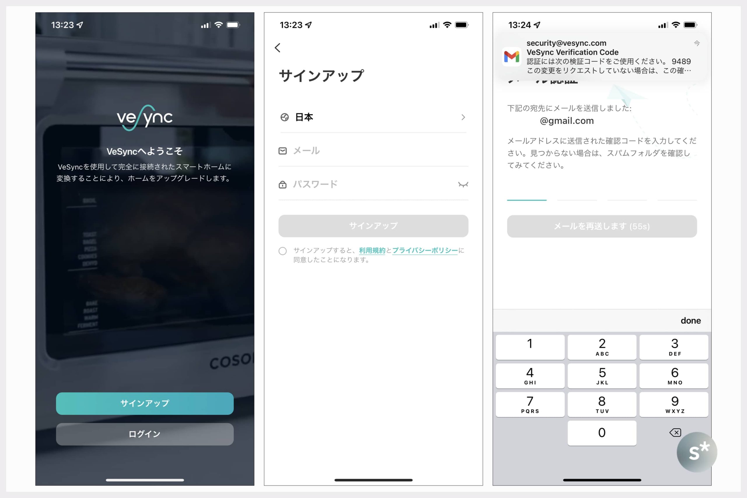 アプリのセットアップも簡単です。まずはVeSyncアプリをダウンロードし、アカウントを作成します。