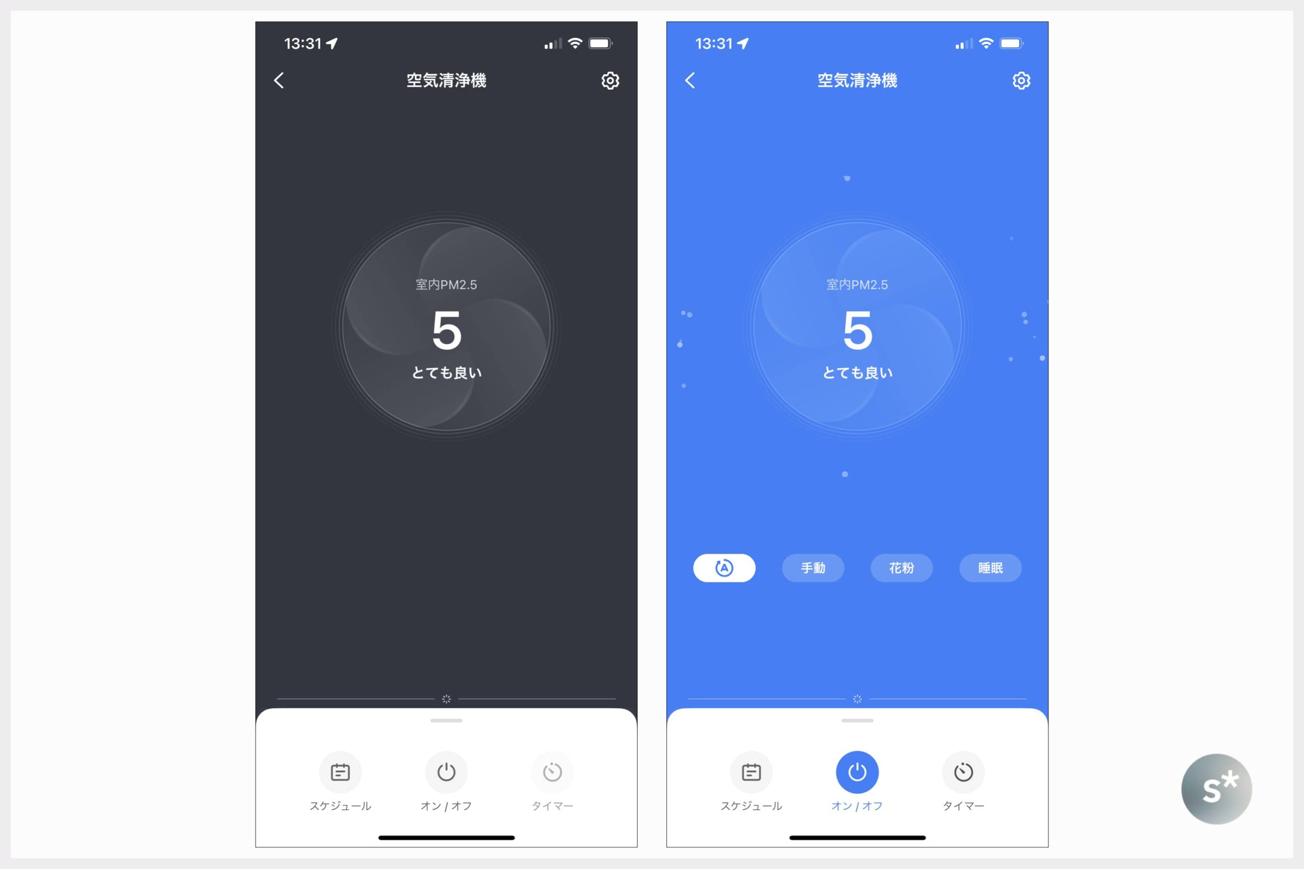 うちではGoogleアシスタントをメインにしているので、「OK Google、空気清浄機をつけて」「OK Google、空気清浄機を消して」「OK Google、空気清浄機を自動モードに」と頼む感じです。オン・オフに加えてモードの切り替えも音声で操作することができます。