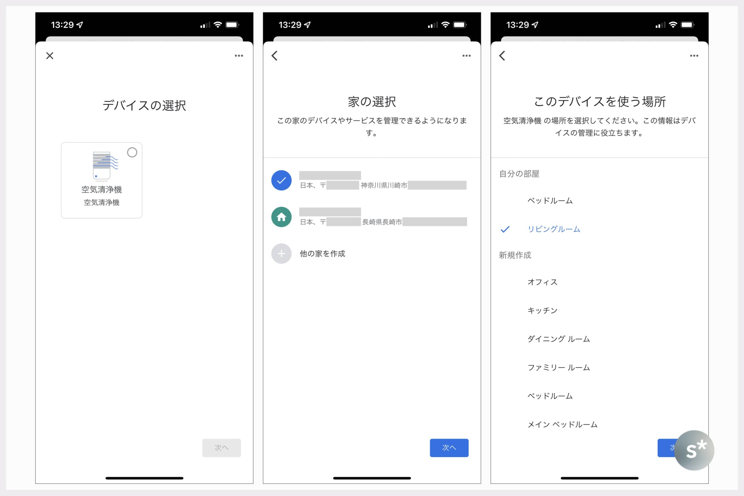 Google Homeアプリに飛ぶので、空気清浄機を設置している家や部屋を選ぶだけで設定完了です。とても簡単。