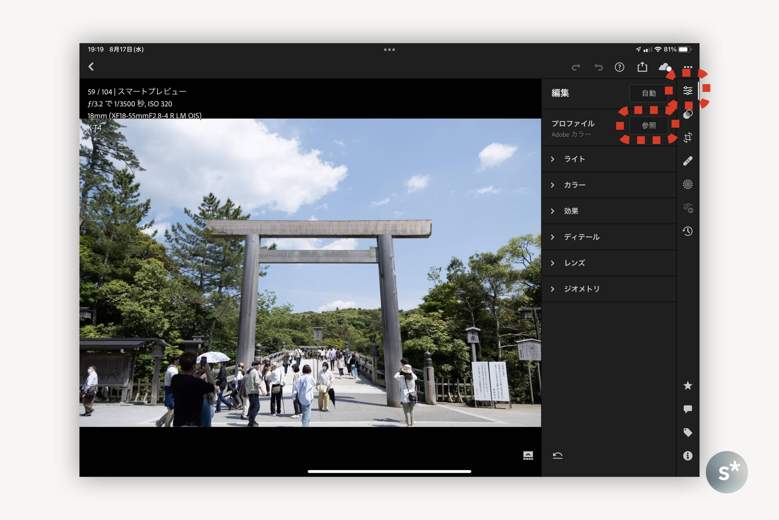 ここではiPad版で説明しますが、Lightroom CCでもほぼ同じ操作です。