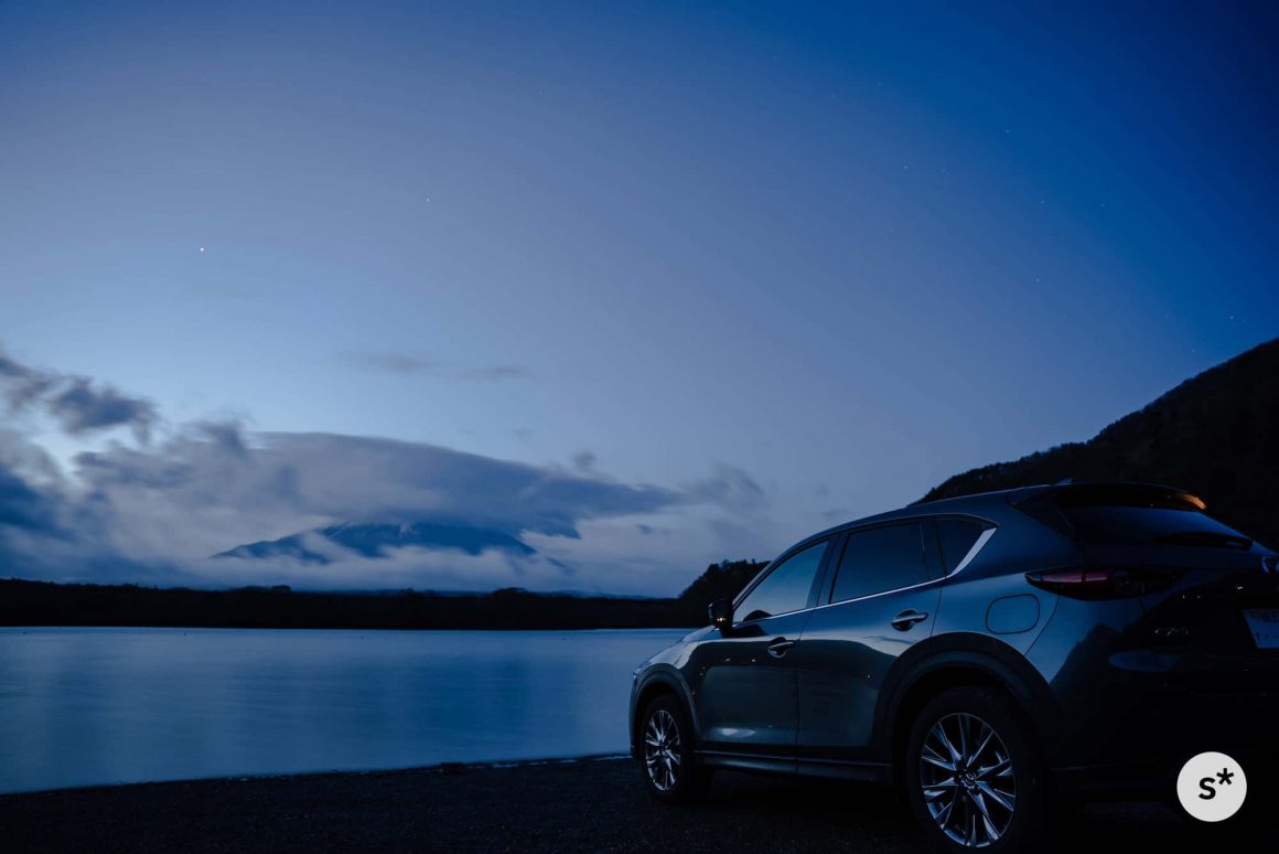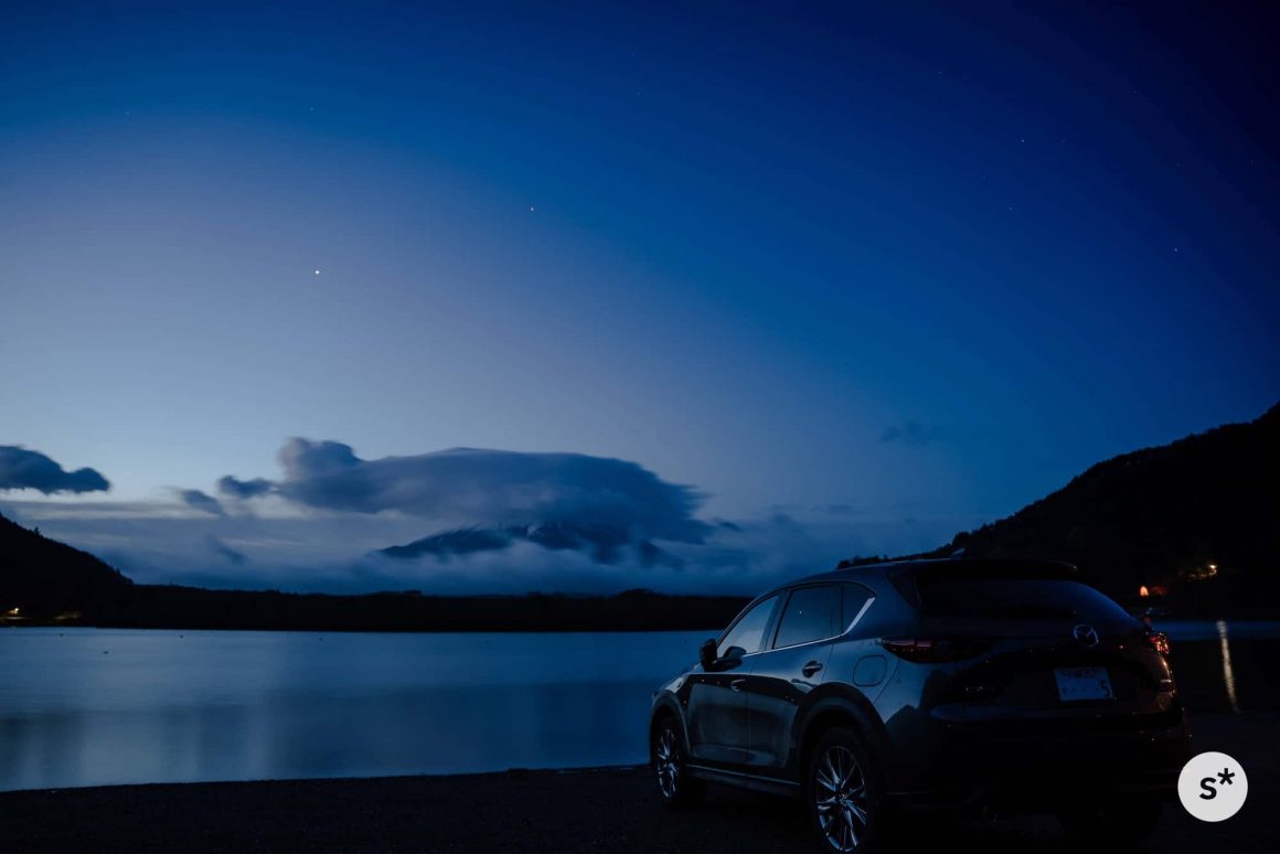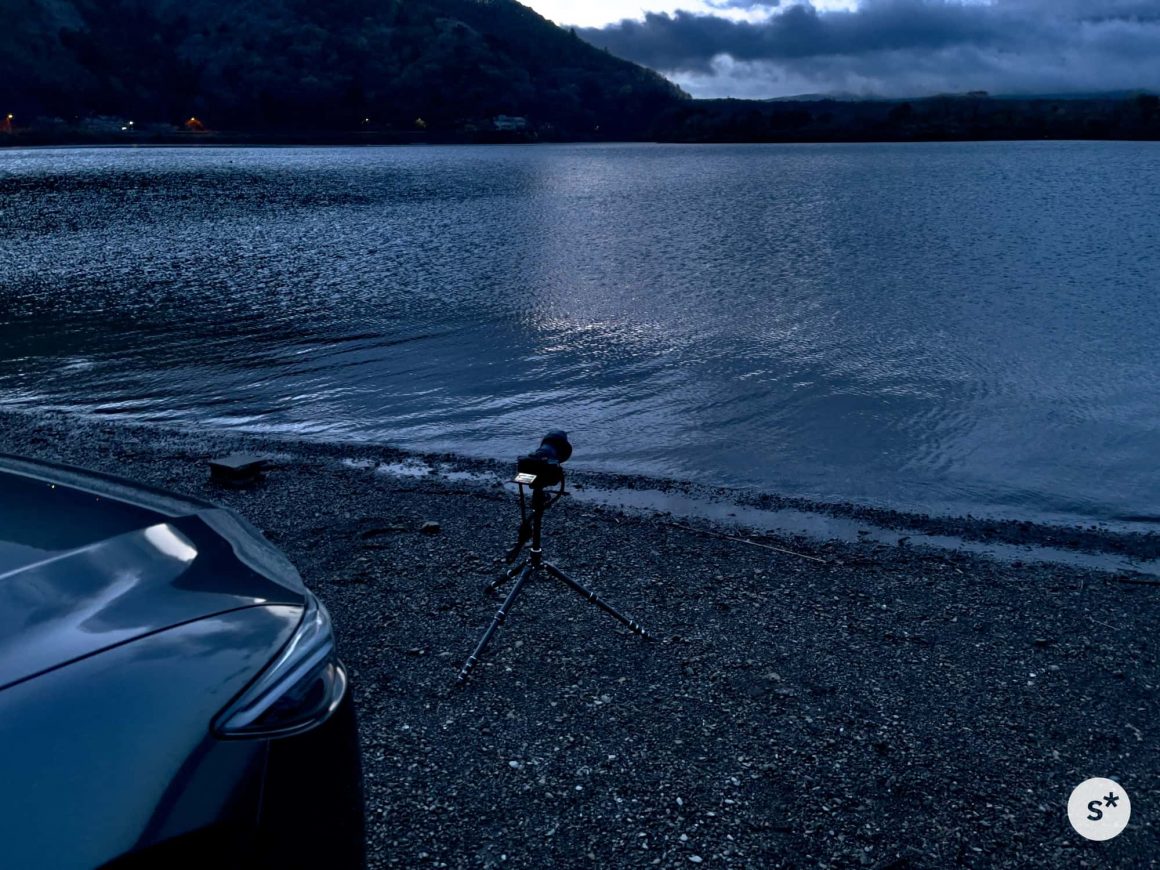 少し風があったので、富士山にかかっている雲も流れていくだろうという目論見のもと、タイムラプスのセッティングに取り掛かります。撮影を開始したらしばらくは放置なので、その間に車の中で仮眠を取ろう。