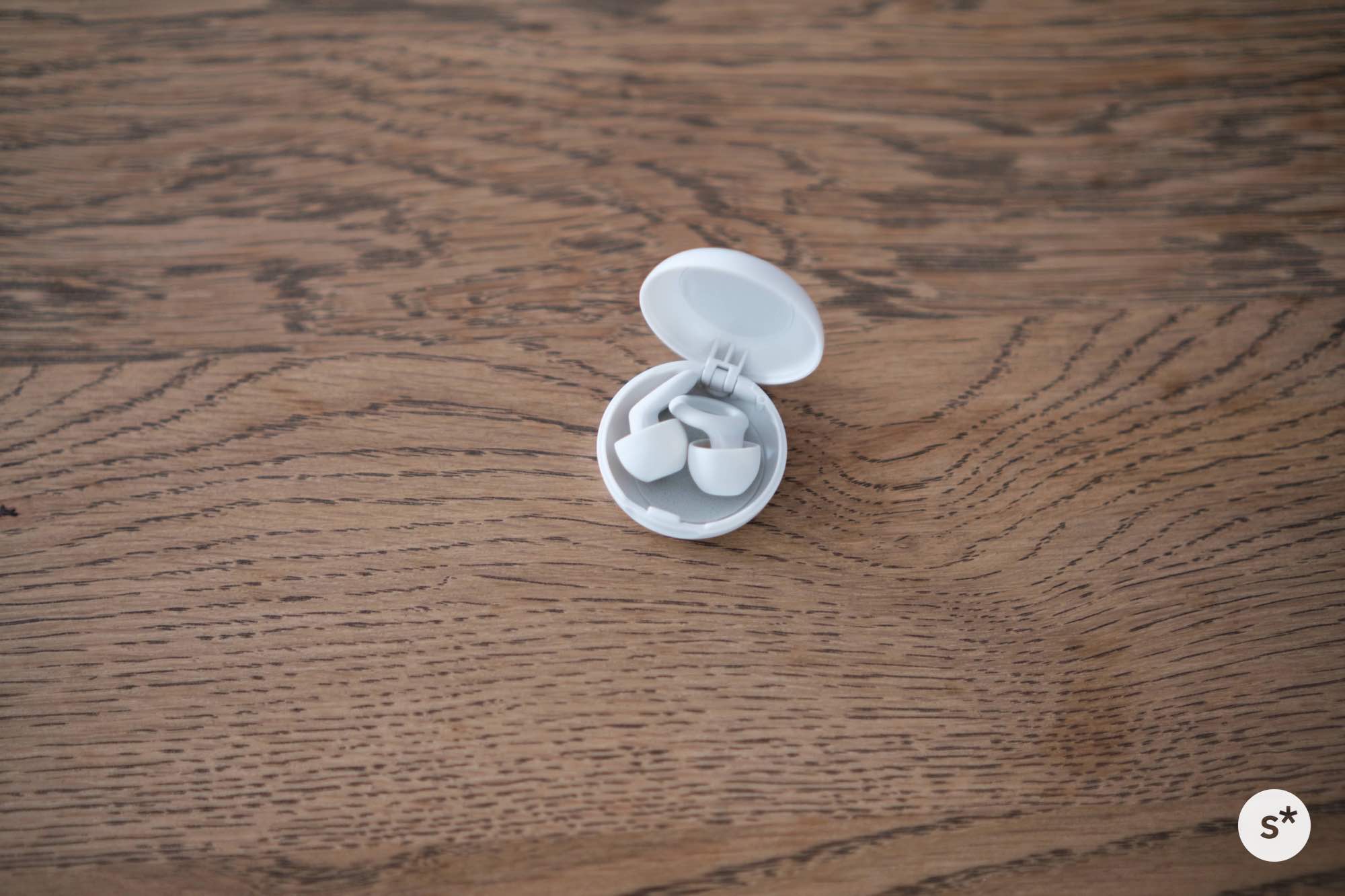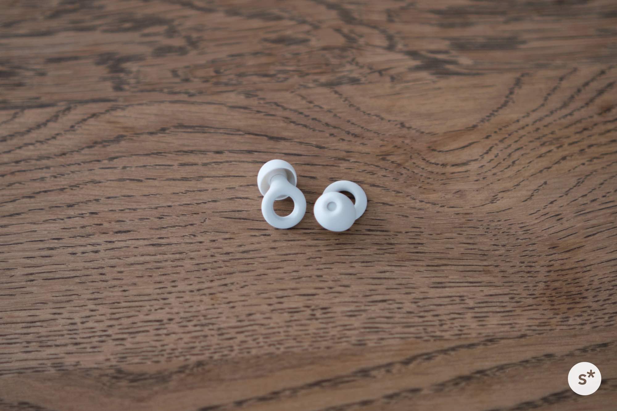 耳栓の本体はデザイン性も高く、イヤホンの先っぽだけを取り外したような構造です。全体がシリコンのような素材でできているから弾力性もあるし、水洗いできるようになっています。
