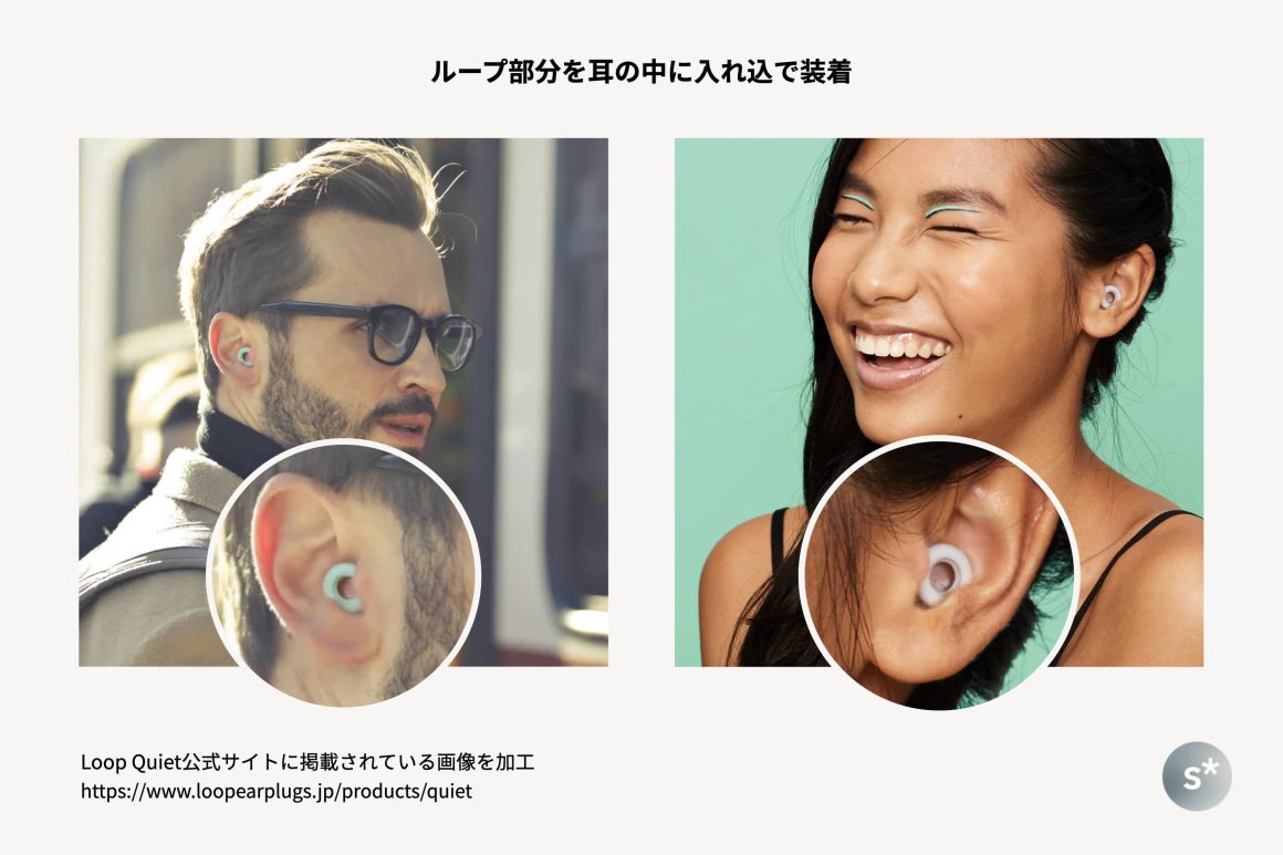 販売サイト上に明示的な説明を見つけられていないけれど、商品ページの写真のようにループ部分をしっかりと耳の中に入れ込む必要があります。ここだけ注意ね。