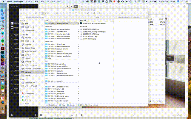 下の画像は、「デスクトップにあるFinder内のファイル」を「フルスクリーンアプリ(Ulysses)」に貼り付ける様子です。