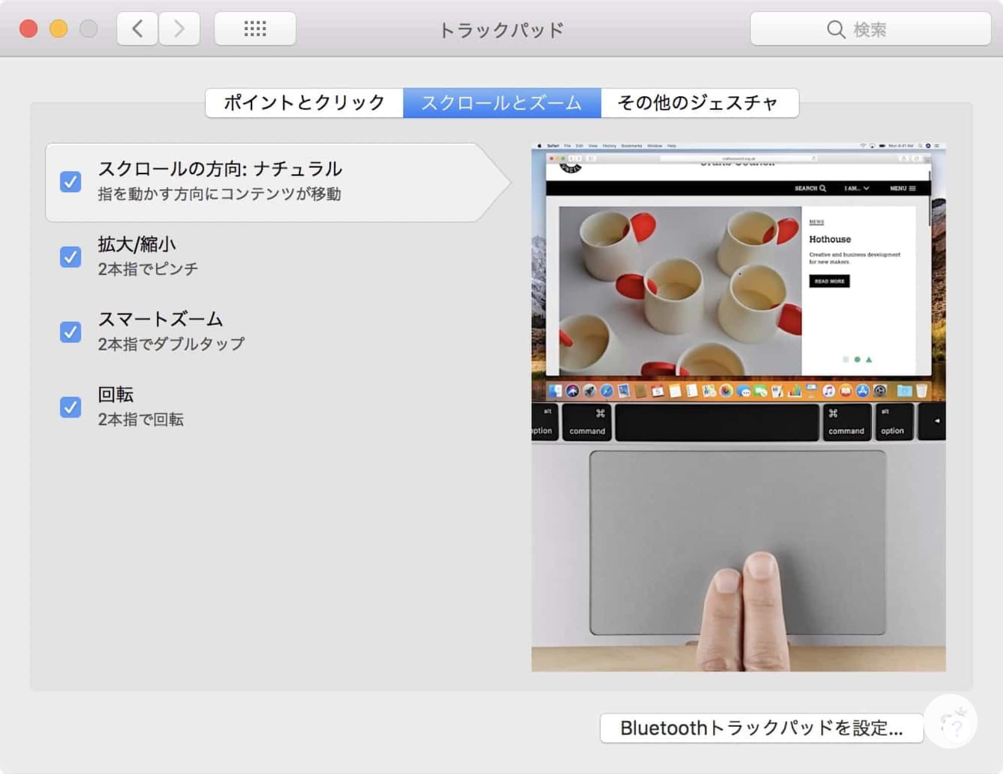 ここからが本題です。まずはトラックパッドの設定から。