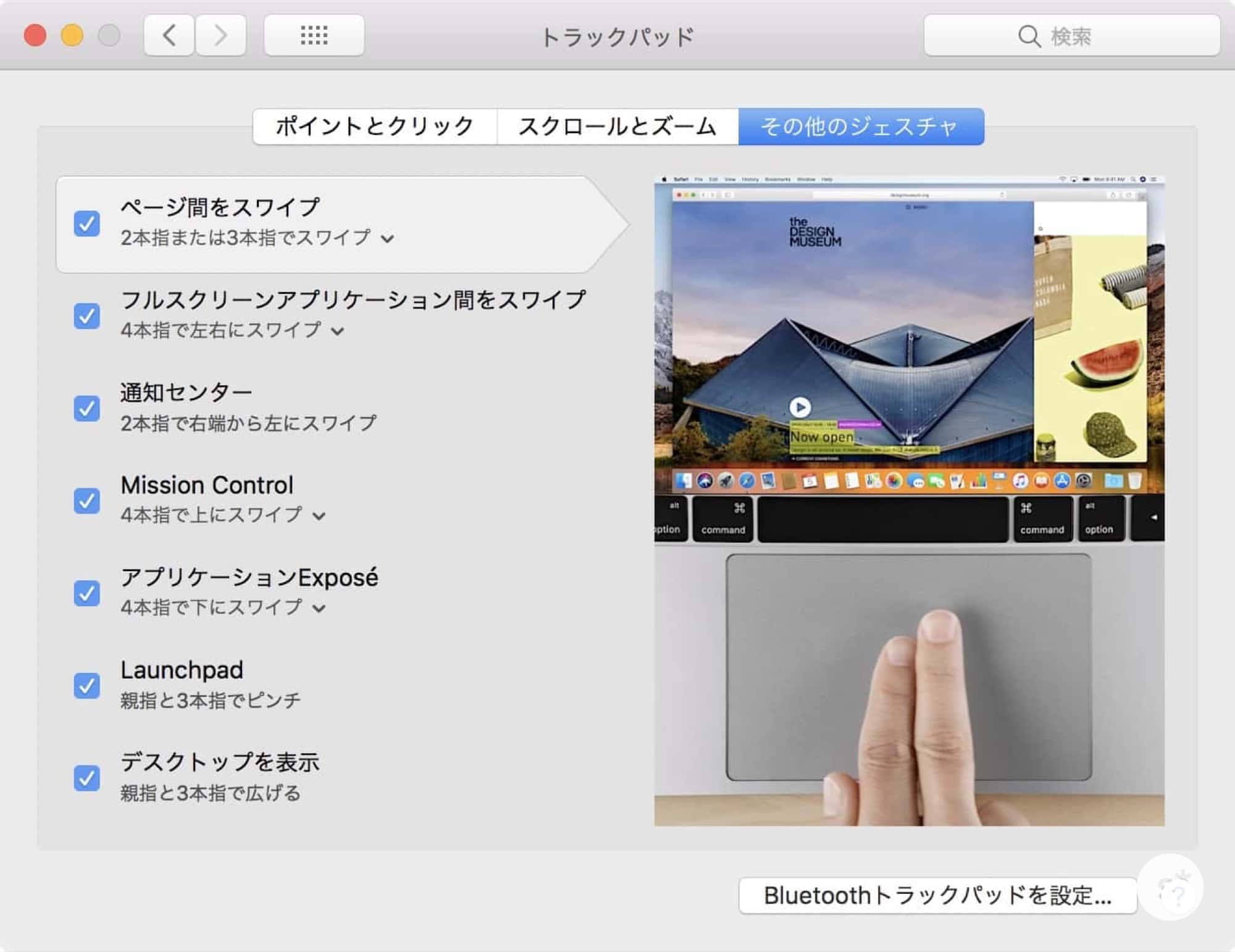 最後に3ページ目「その他のジェスチャ」。僕は以下のように設定しています。