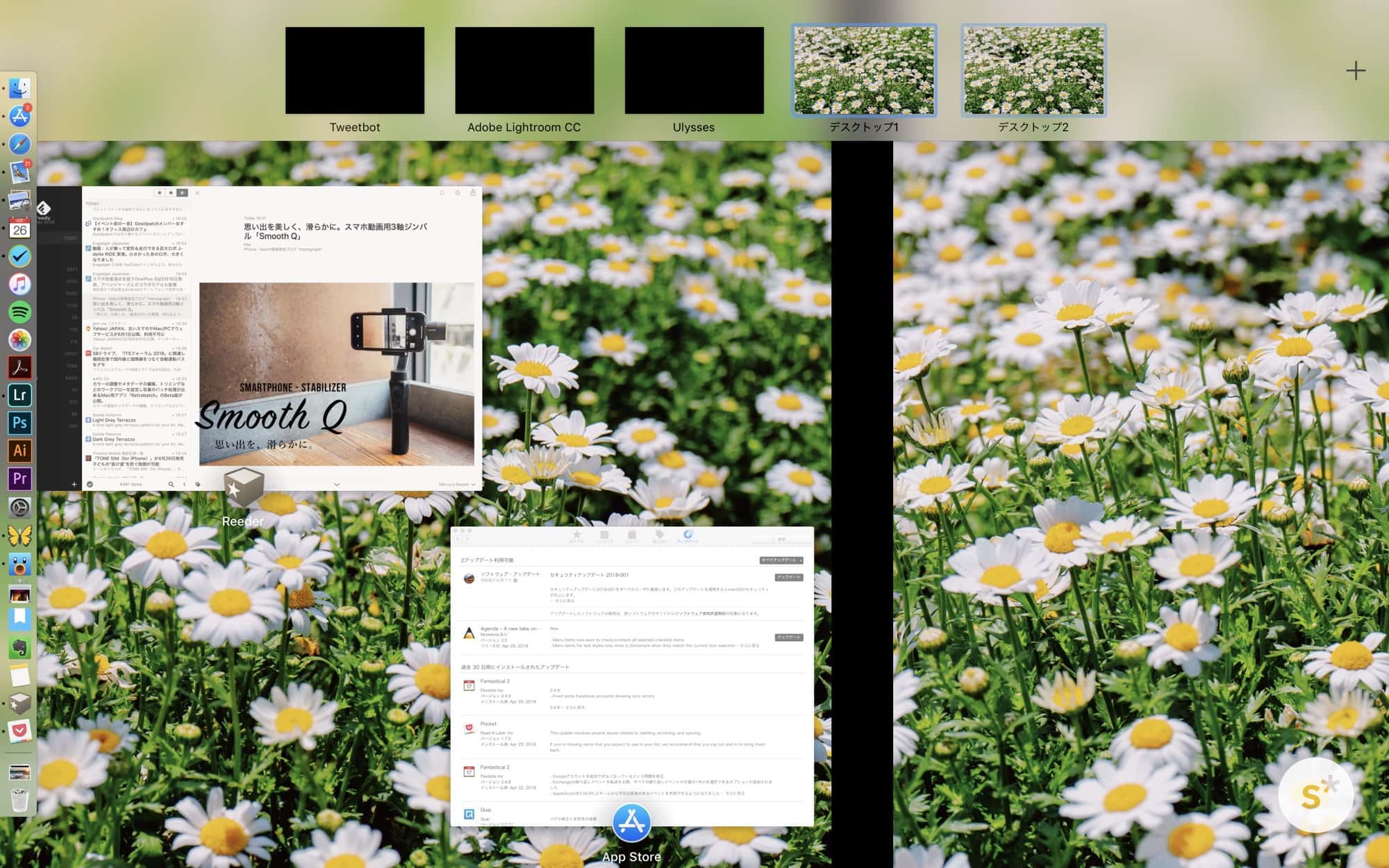 こうすると、行いたい作業に応じて目的のデスクトップを切り替えることができるので、感覚的に作業をすることができます。