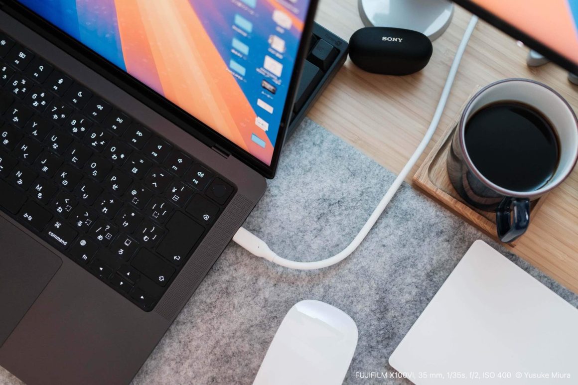 詳細はまた書きますが、MacBook Proにケーブル1本繋ぐだけで、充電と映像出力ができるので、とても便利。Mac miniとU2725QEはThunderboltで繋いだまま、別のHDMI入力ポートを使っています。