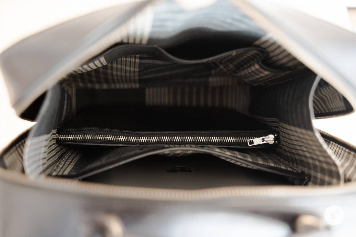 ただし背面には、内側にあるポケットを縫い付けるための糸が見えてしまっています。構造上仕方のないものですが。