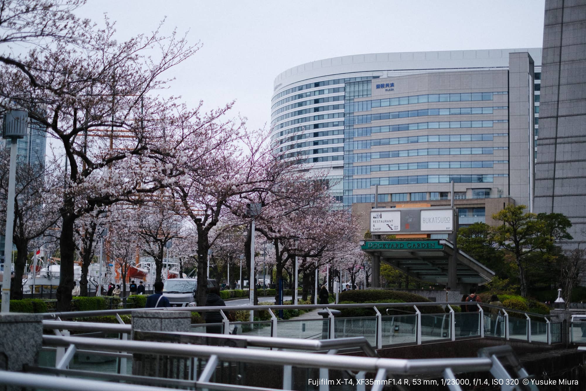 新しいレンズが届いたので、昨日は試写を兼ねて外に持ち出してみました。ちょうどみなとみらいでお昼ご飯を食べる予定があったので、桜も咲いてきたことだし、ちょうどいい機会だったのです。