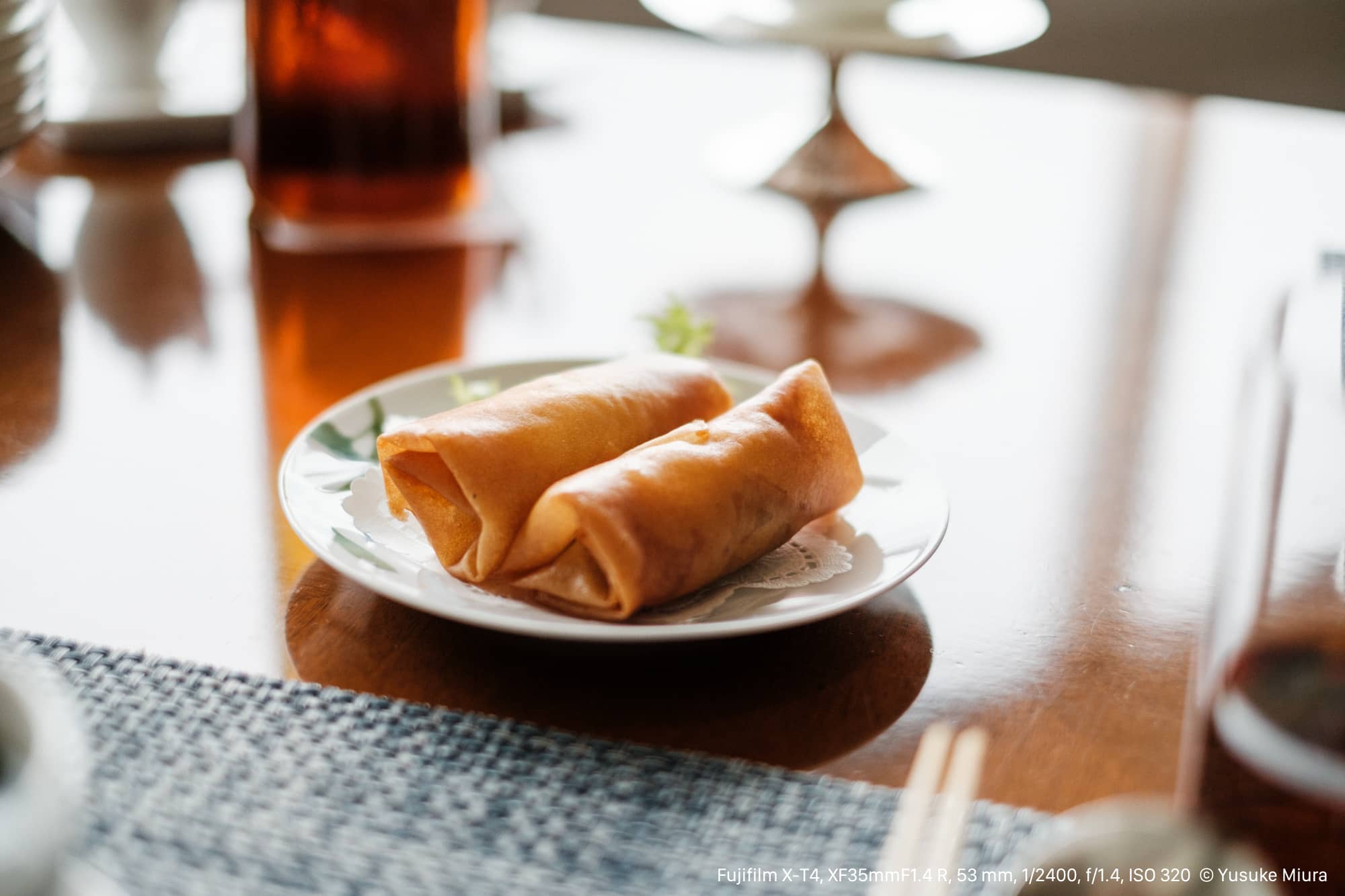 このレンズはテーブルフォトでも活躍してくれました。換算53mmなので画角は広くないですが、最短撮影距離28cmなので、テーブルの上の料理をドラマチックに切り取るには最適。