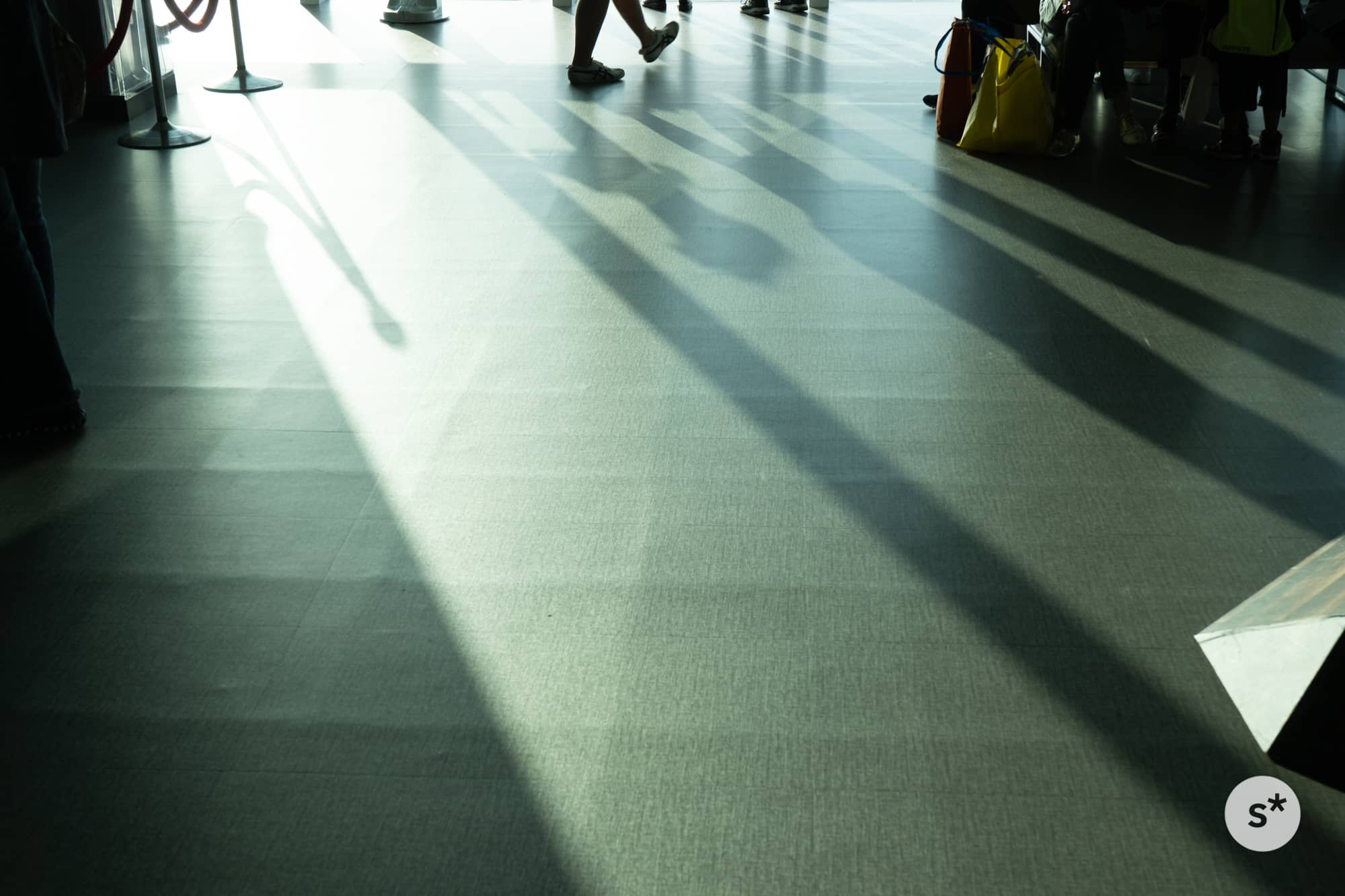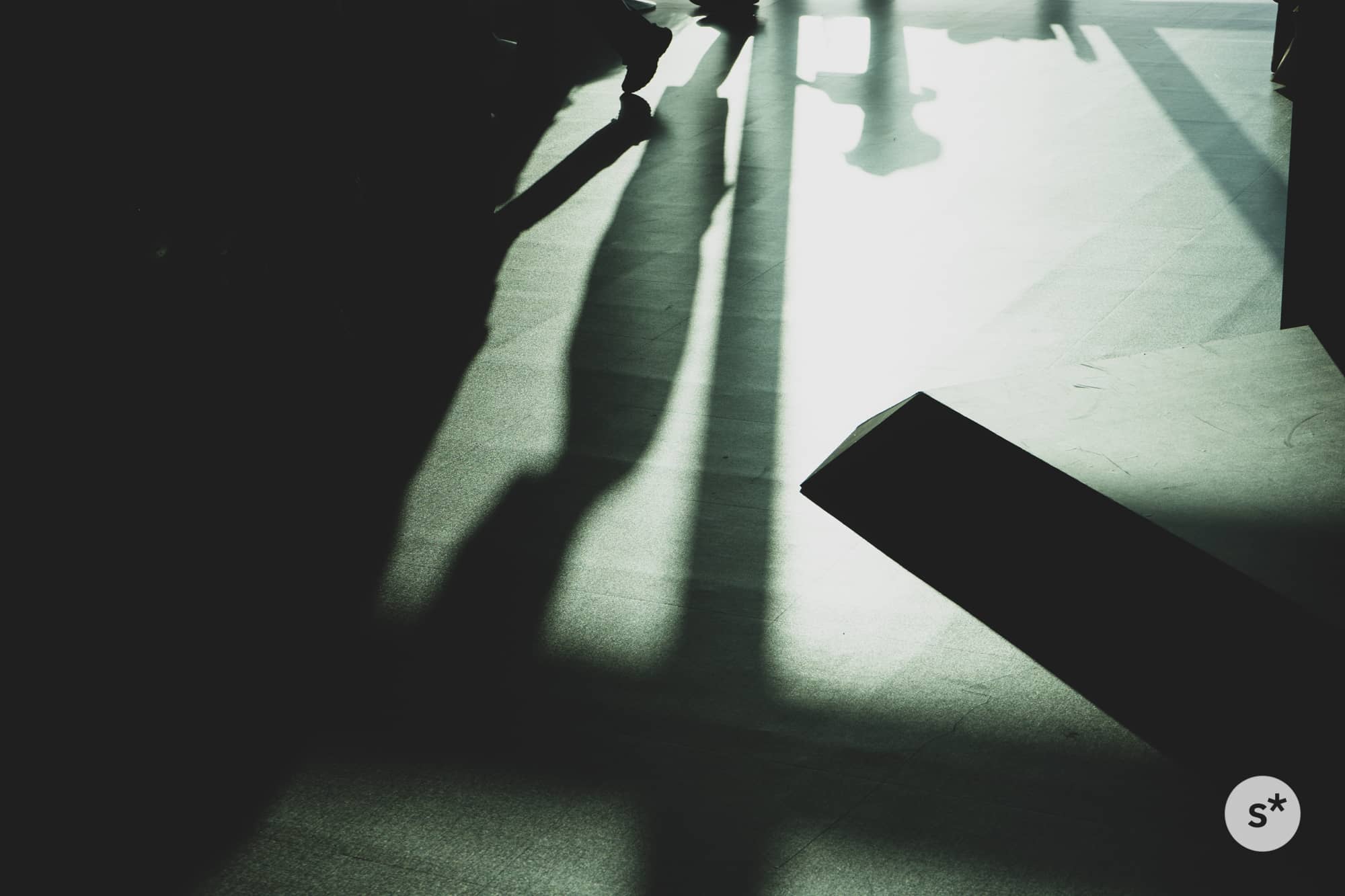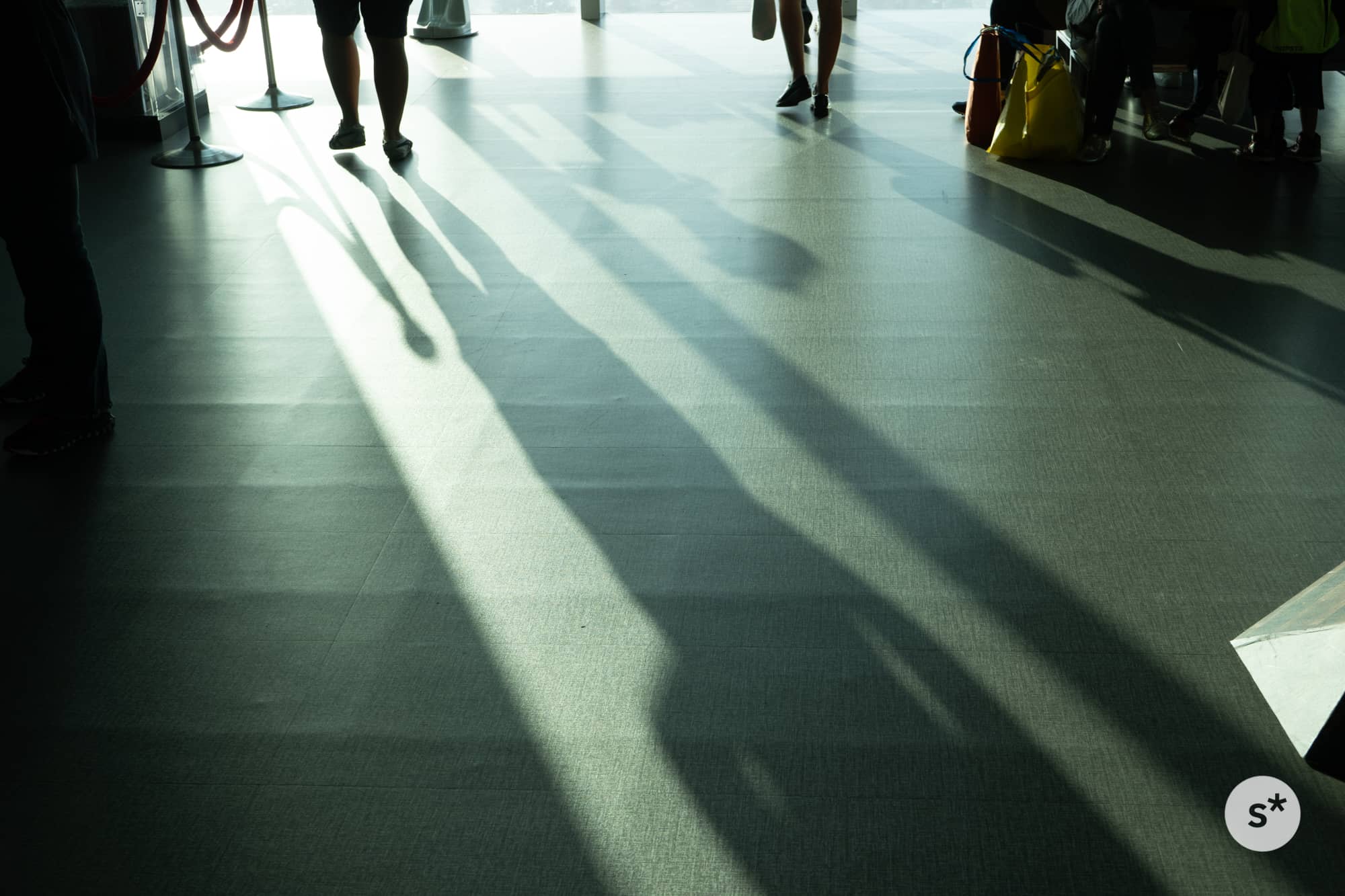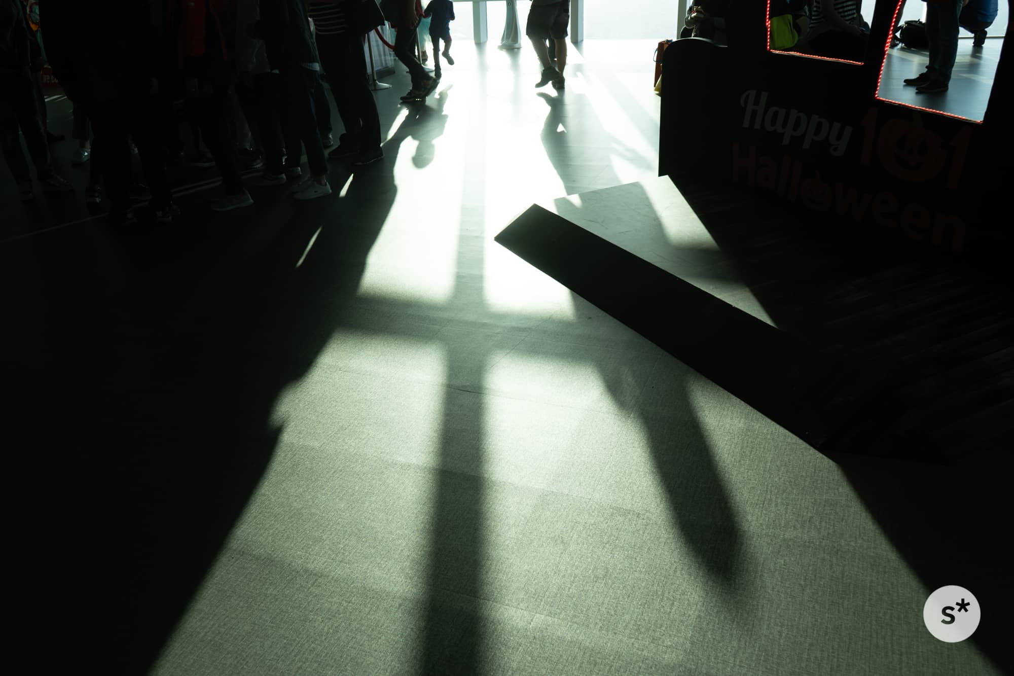 奥から手前に伸びる影の角度もいい感じだし、中央奥で歩いている人の足が上がるタイミングもバッチリですね。