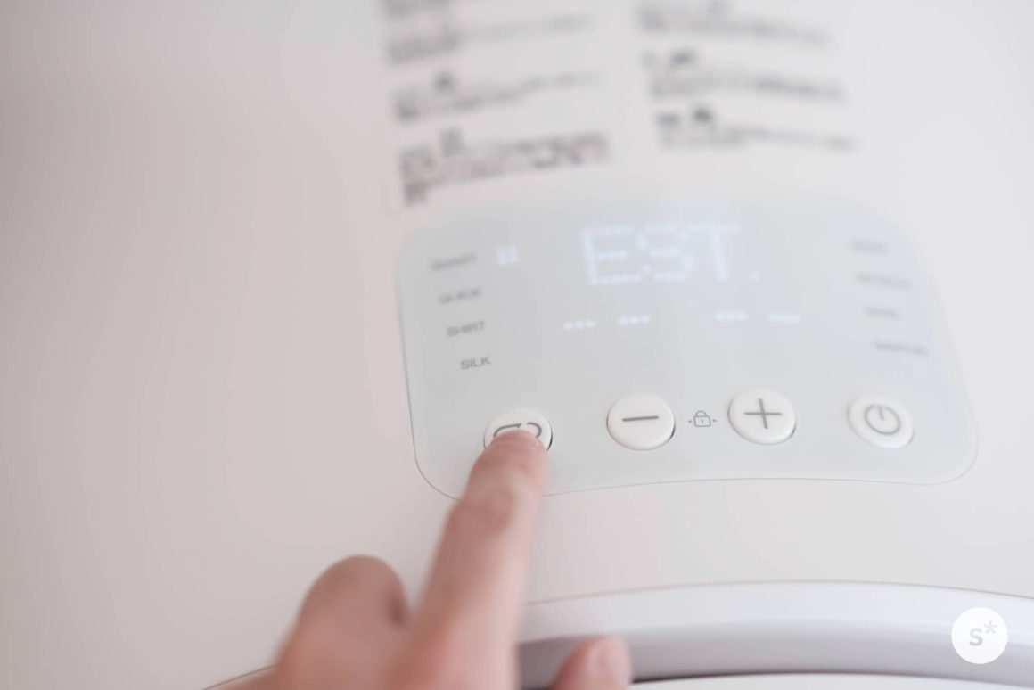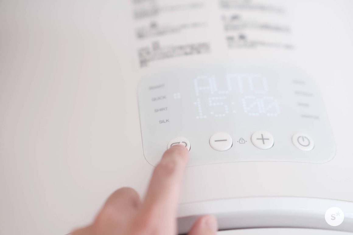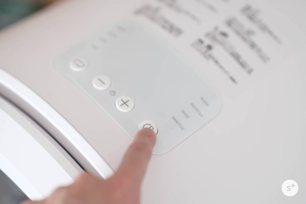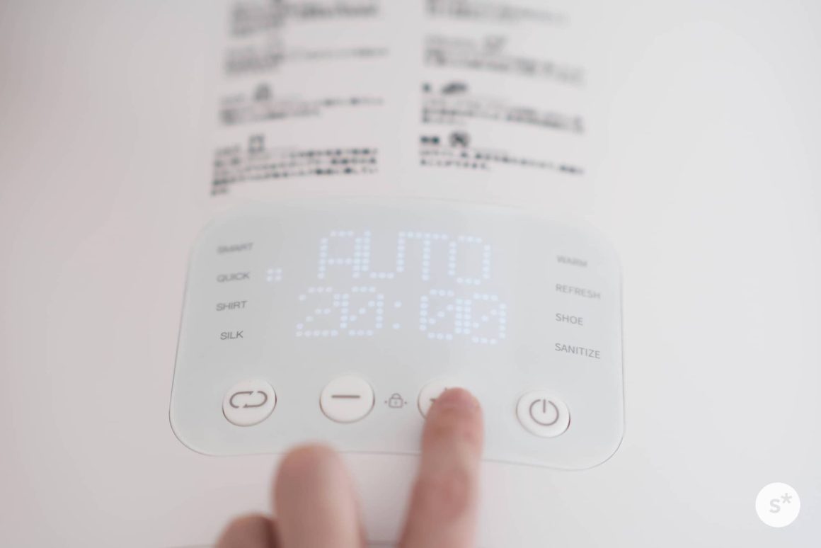 使い方はとても簡単です。乾燥する衣類を中に入れたあとは、電源を入れ(電源ボタン長押し)、モードを選択し、スタート(電源ボタン短押し)するだけです。スマートモードでよければモードを選択する必要すらないので、電源ボタンの長押し+短押しで乾燥が始まります。