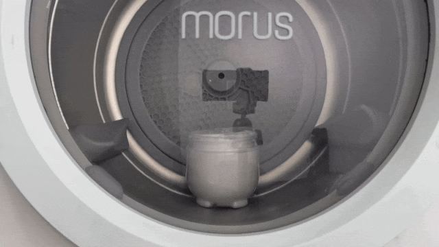 ご参考までに、MakuakeのMorus Zeroのページから転載します。容器に入れたクリームをMorus Zeroの中に置いたものですが、減圧によってクリームがふくれあがっていますね。
