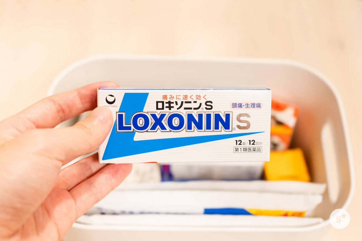 まずはロキソニン。頭痛のときや体のスジを痛めたときに使っています。