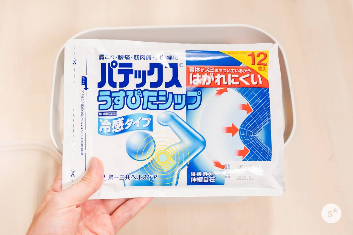 あとは湿布。無印のケースはこのサイズを立てて入れることができるくらいの大きさです。