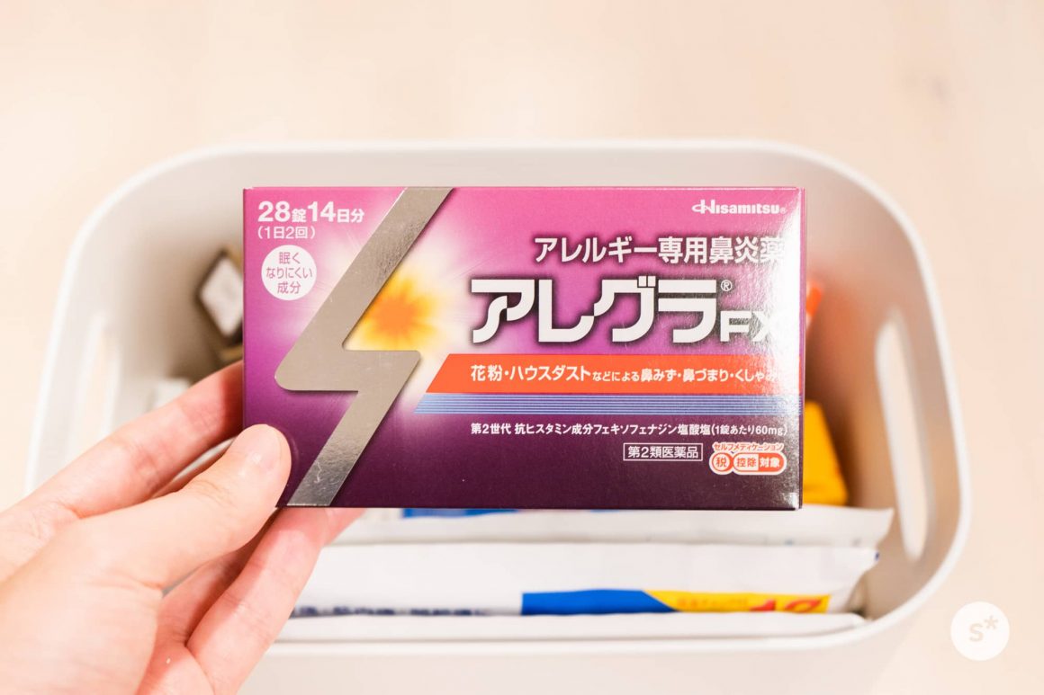 花粉の時期には手放せないアレグラ(昨シーズンの余り)。関東は花粉の量も多いし飛んでる期間も長いから必須。