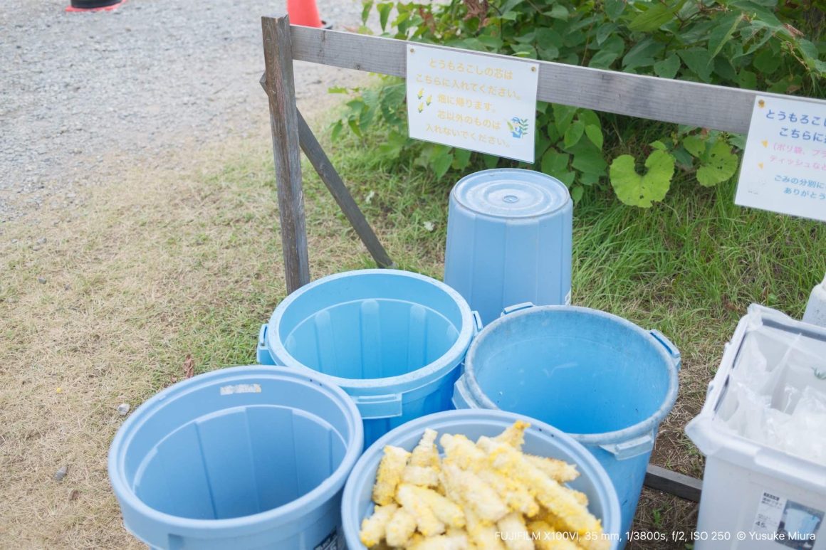 そして、食べ終わったとうもろこしの芯は、専用のごみ箱で回収されていました。この芯が肥料になって畑に還り、また来年のとうもろこしがおいしくできるんですね。いい循環だなと思いました。