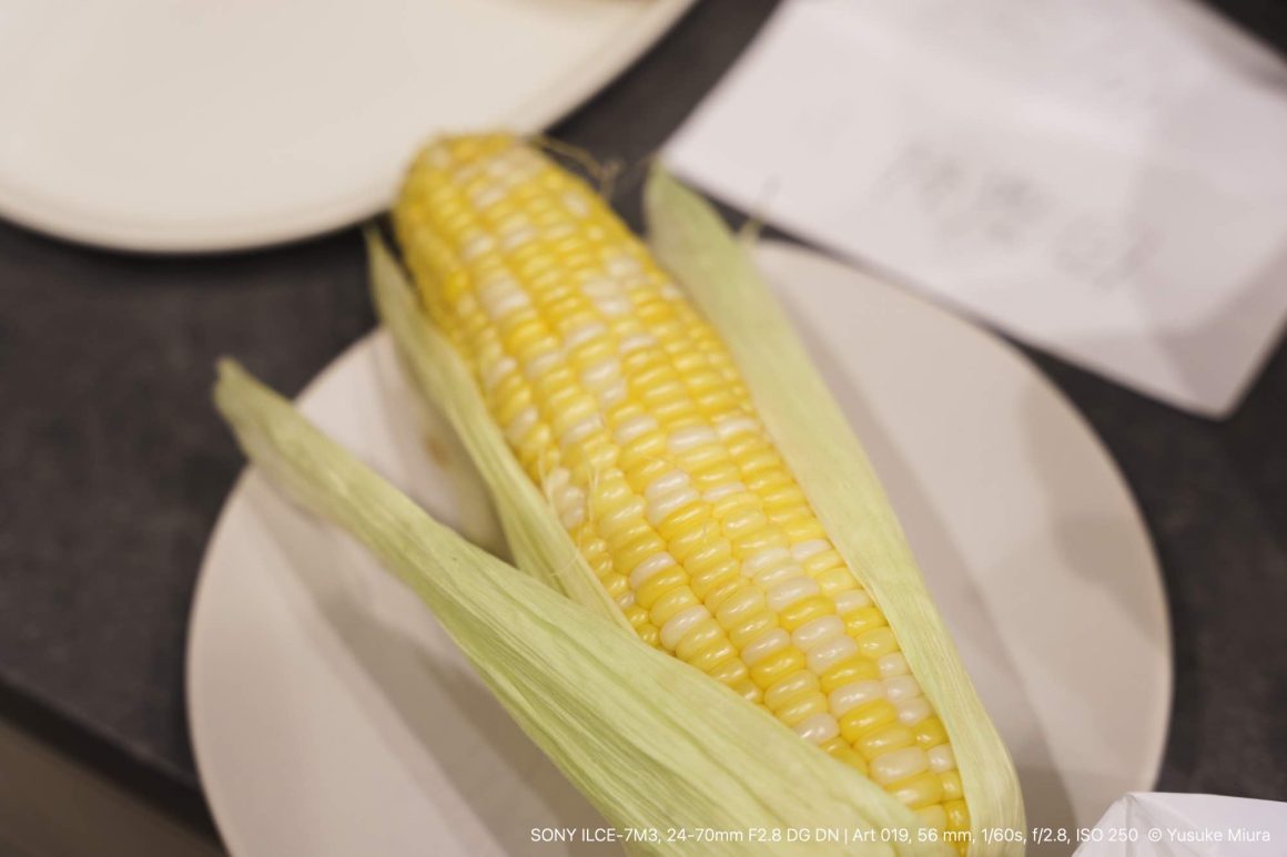 そして、肝心のとうもろこしは、「サニーショコラ」という品種です。しっかりとした風味とさっぱりとした甘みが特徴で、ジューシーな食感を楽しめるらしい。確かに、焼きとうもろこしもそんな感じだった。