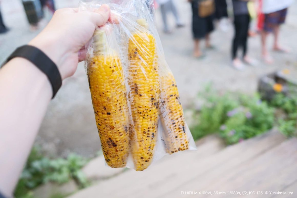 結局30分くらい並んでたのかな。次々ととうもろこしが焼かれるいい匂いに期待を膨らませながら、待っていました。