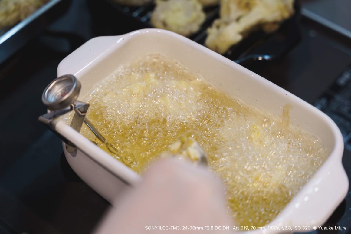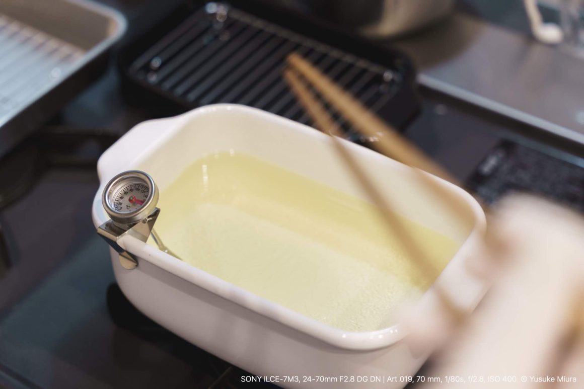 ちなみに天ぷら鍋は、ホーロー製の角形ものを使っています。飴のように艶があってかわいらしく、白いから油の汚れ具合もよく分かります。これだけ揚げ物をすると黒い汚れが多くこびりつきますが、重曹で洗うと一瞬で取れました。
