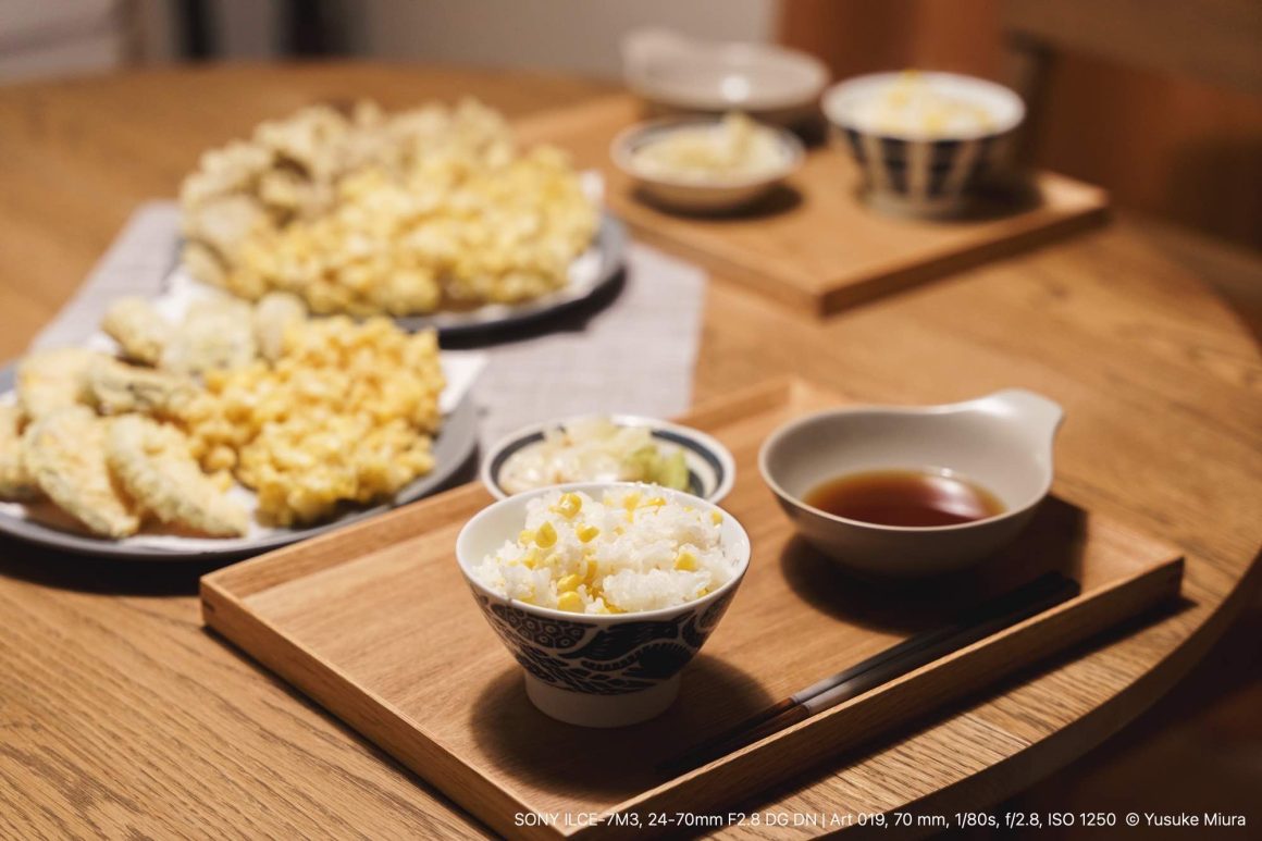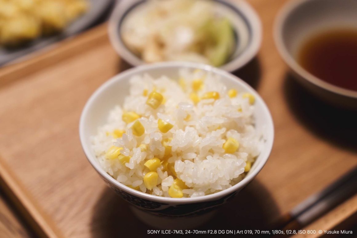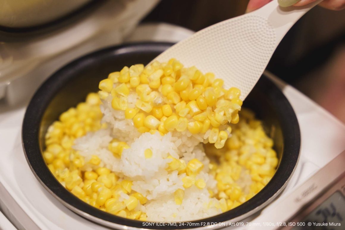 そして、とうもろこしごはんもサニーショコラ。炊いている間も、とうもろこしのいい香りが部屋中に漂っていました。もちろん味も格別です。天ぷらにごはんに、とうもろこしは何にでも合いますね…!