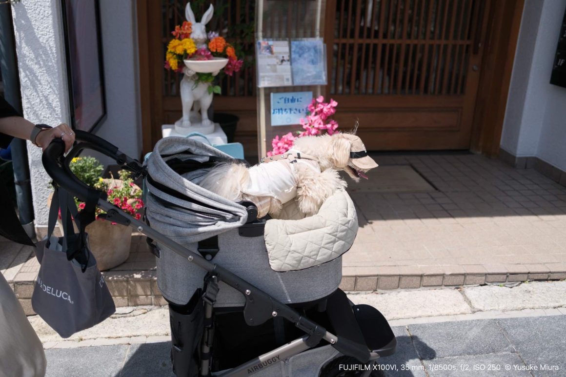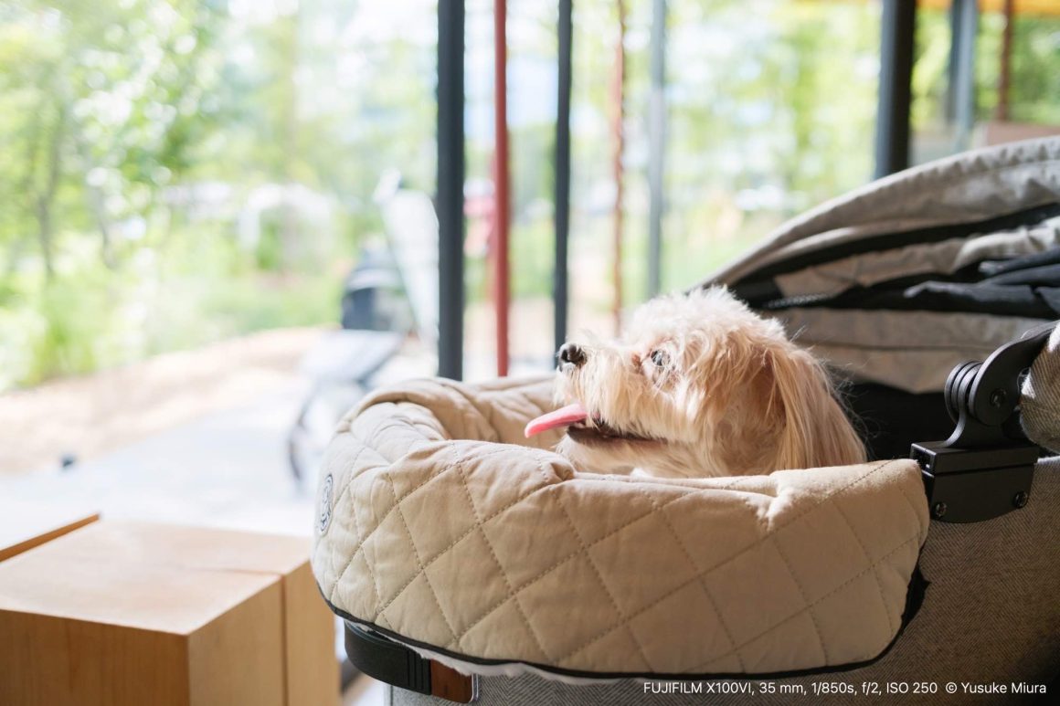 店内に入ると、目の前にSHOZO COFFEEのカフェがありました。15時くらいだったからか、比較的店内は空いていました。犬はカートに乗ってもらって、一緒に店内に入ります。