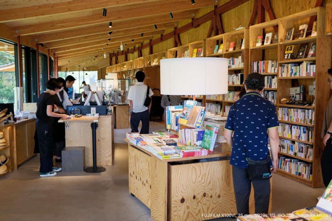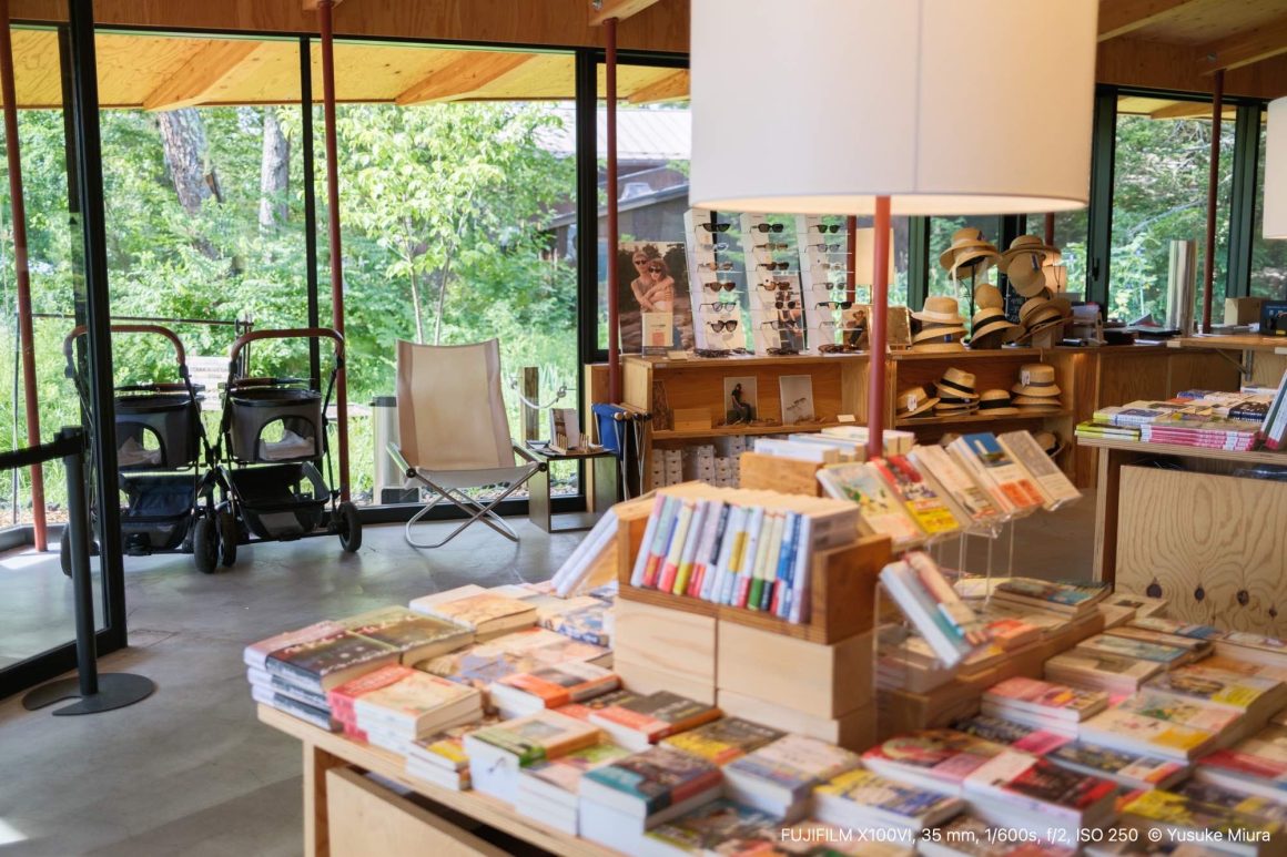 敷地には、この「軽井沢書店 中軽井沢店」をはじめ、カフェやデリ、ワインショップ、そば屋など個性豊かな店が点在。ウッドデッキを歩きながら気になるお店をのぞいたり、本を片手にコーヒーを味わったりと、気ままな時間を楽しめます。