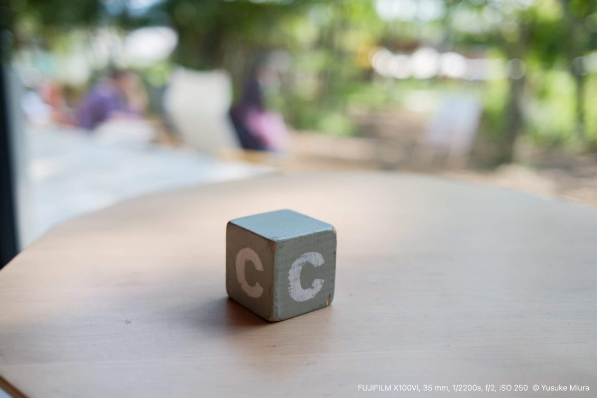 番号札の代わりに、かわいらしいサイコロみたいなものが。木で出てきていて、SHOZO COFFEEの看板と同じ色で塗装され、「C」の文字が描かれています。これがテーブルにあるだけでおしゃれに見えてしまうね。