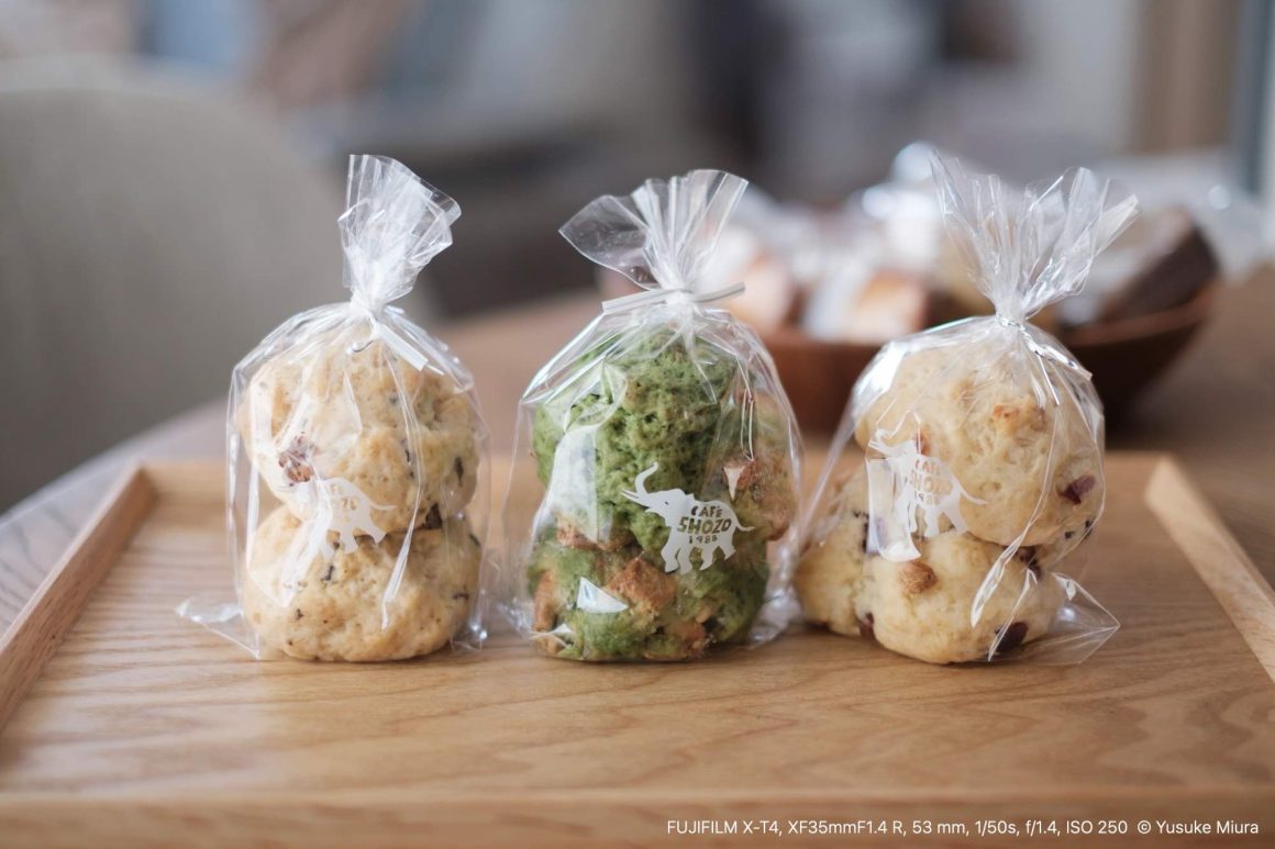 そして先日、軽井沢コモングラウンズ内に、SHOZO KARUIZAWA OVENがオープンしました。こちらは持ち帰りの専門店で、店内で焼き上げたスコーンや、そのほかの焼き菓子を買って帰ることができます。