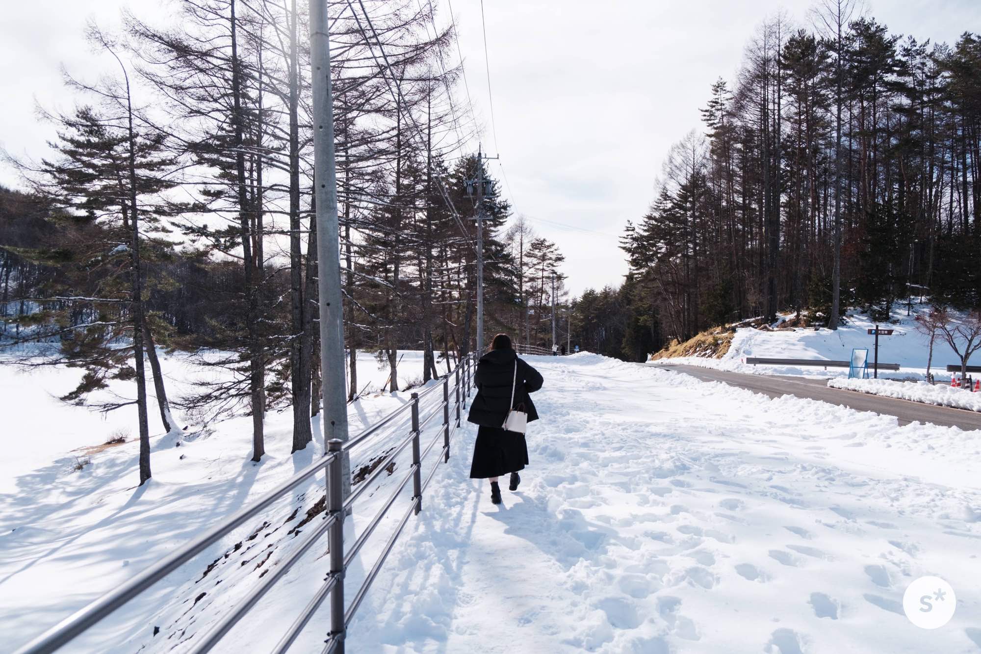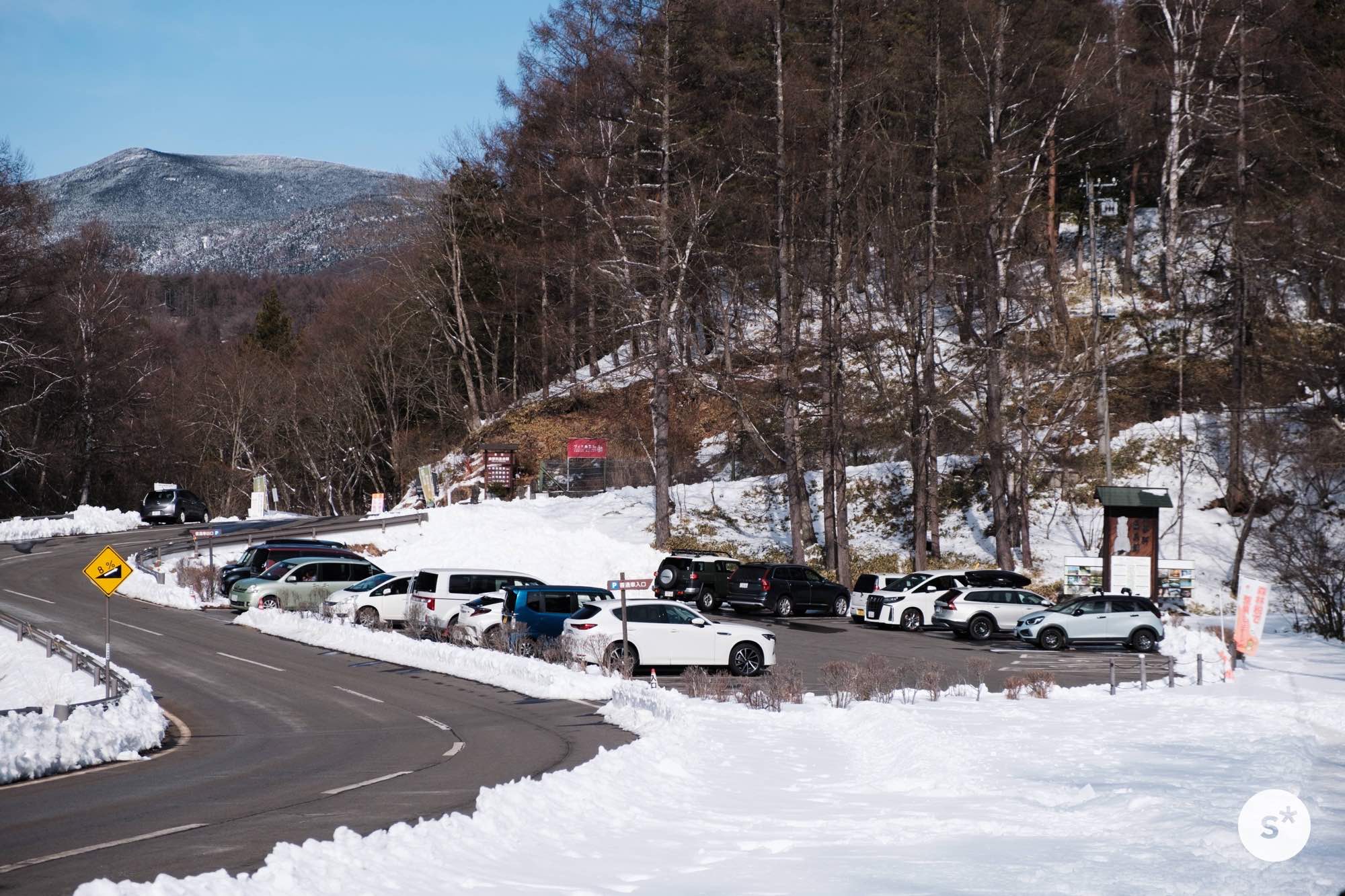 諏訪南ICで高速を降りて蓼科方面に進みます。途中では一面の雪景色があったりして、こんな景色を見るの初めてかもしれない…!