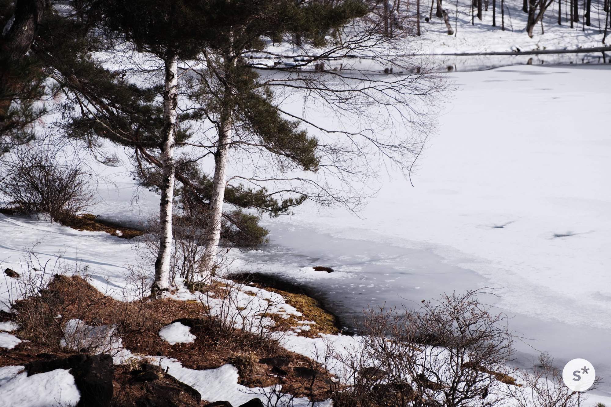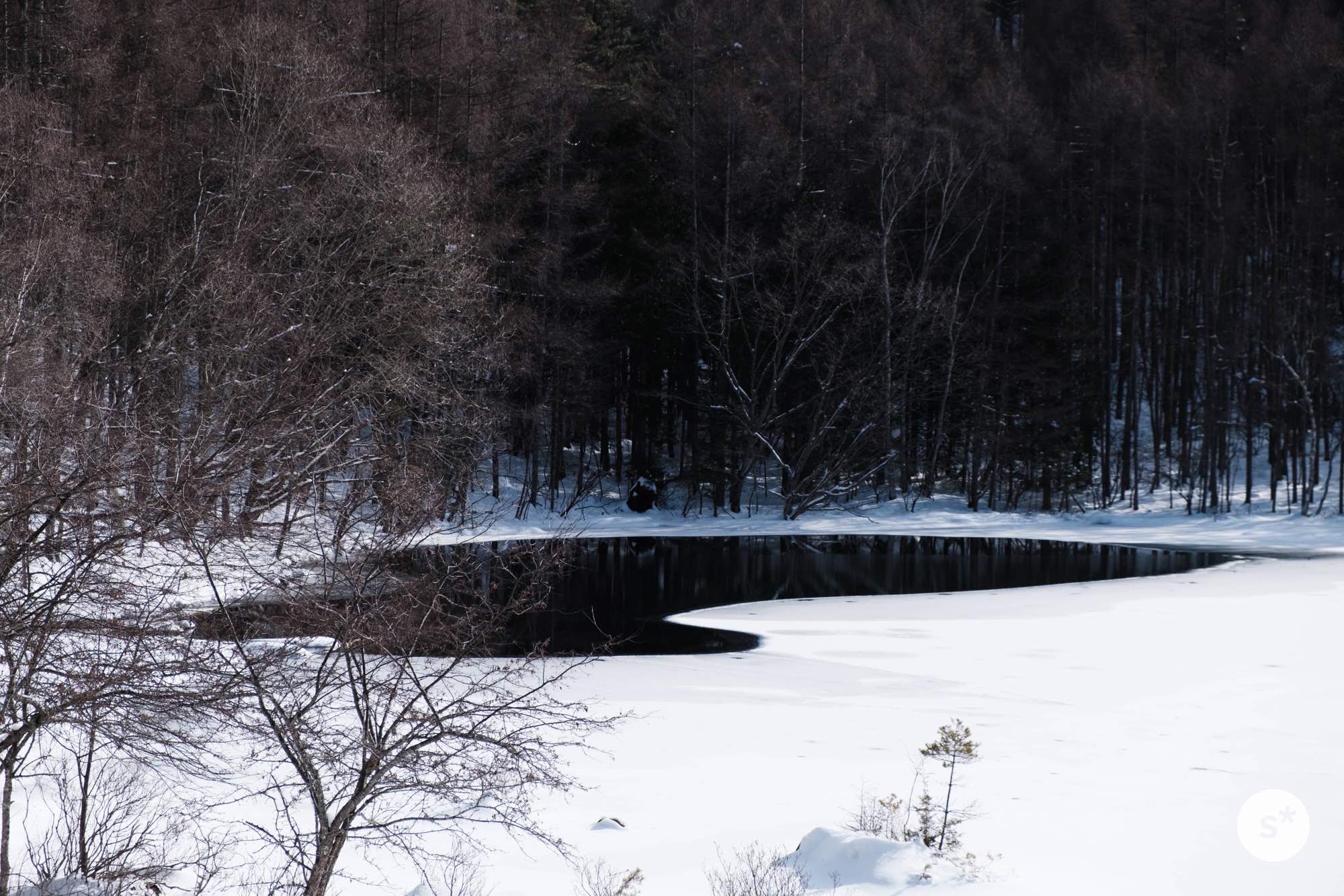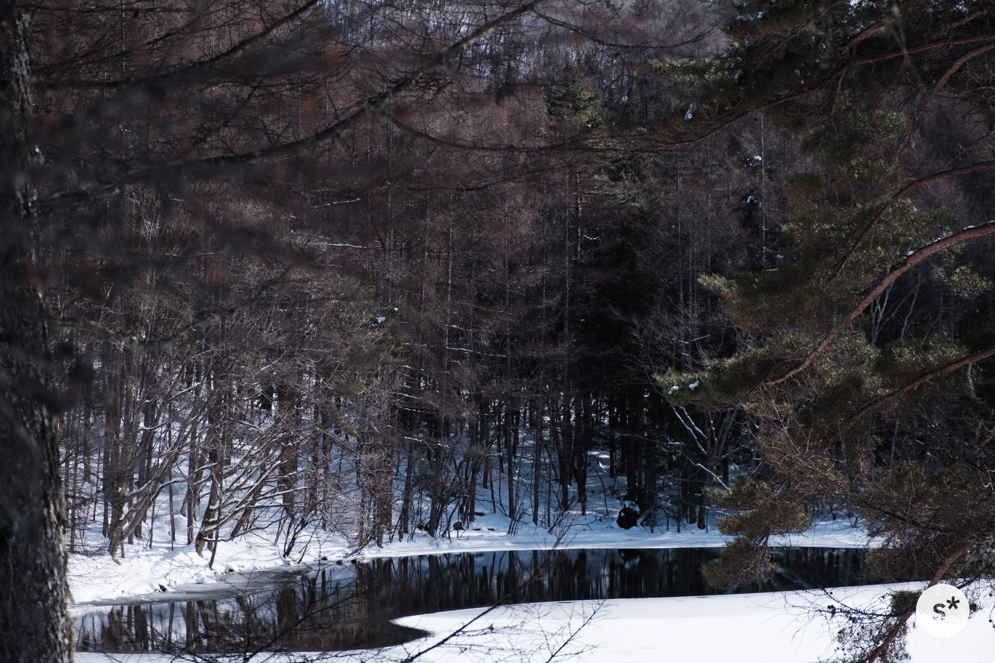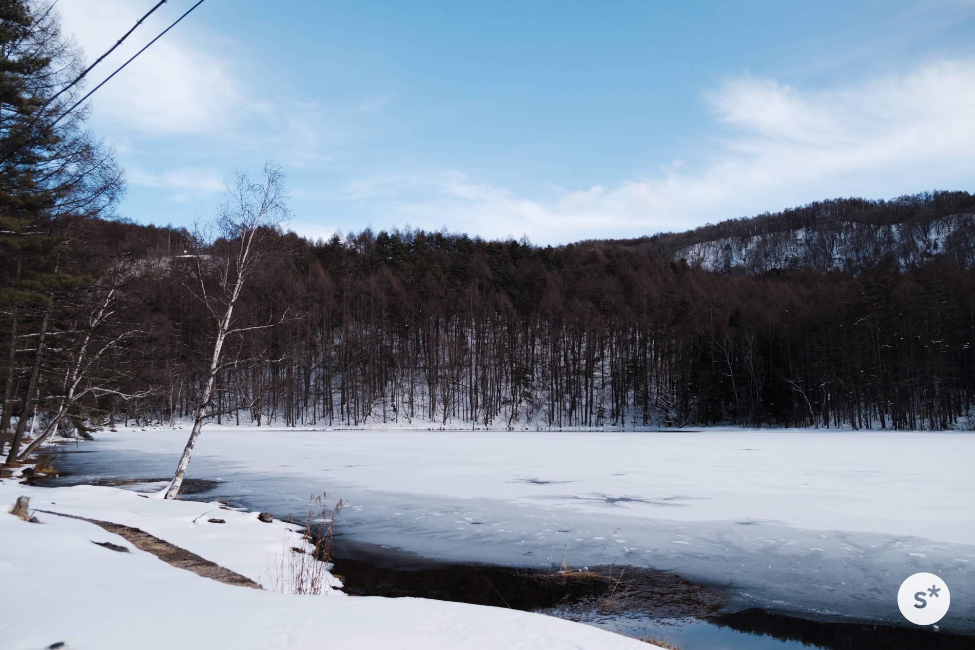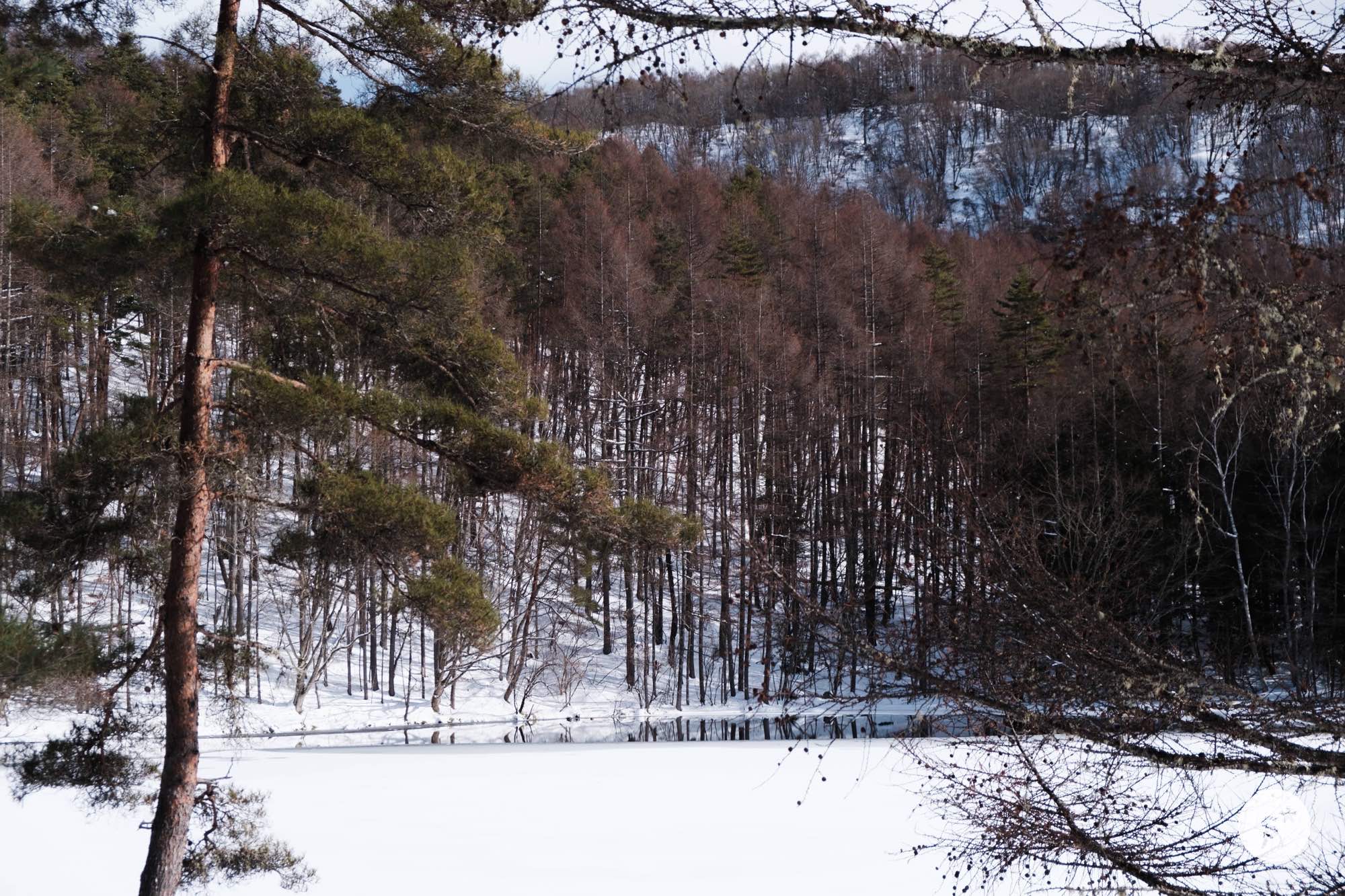 季節ごとに色を変える池として有名で、池の周囲にあるカラマツの林は、夏は青々と茂り、秋は紅葉が美しく、冬は雪が積もって一面真っ白になります。夏や秋に行ったことはないのですが、真っ白な池を見たいと思って今回訪れることにしていました。