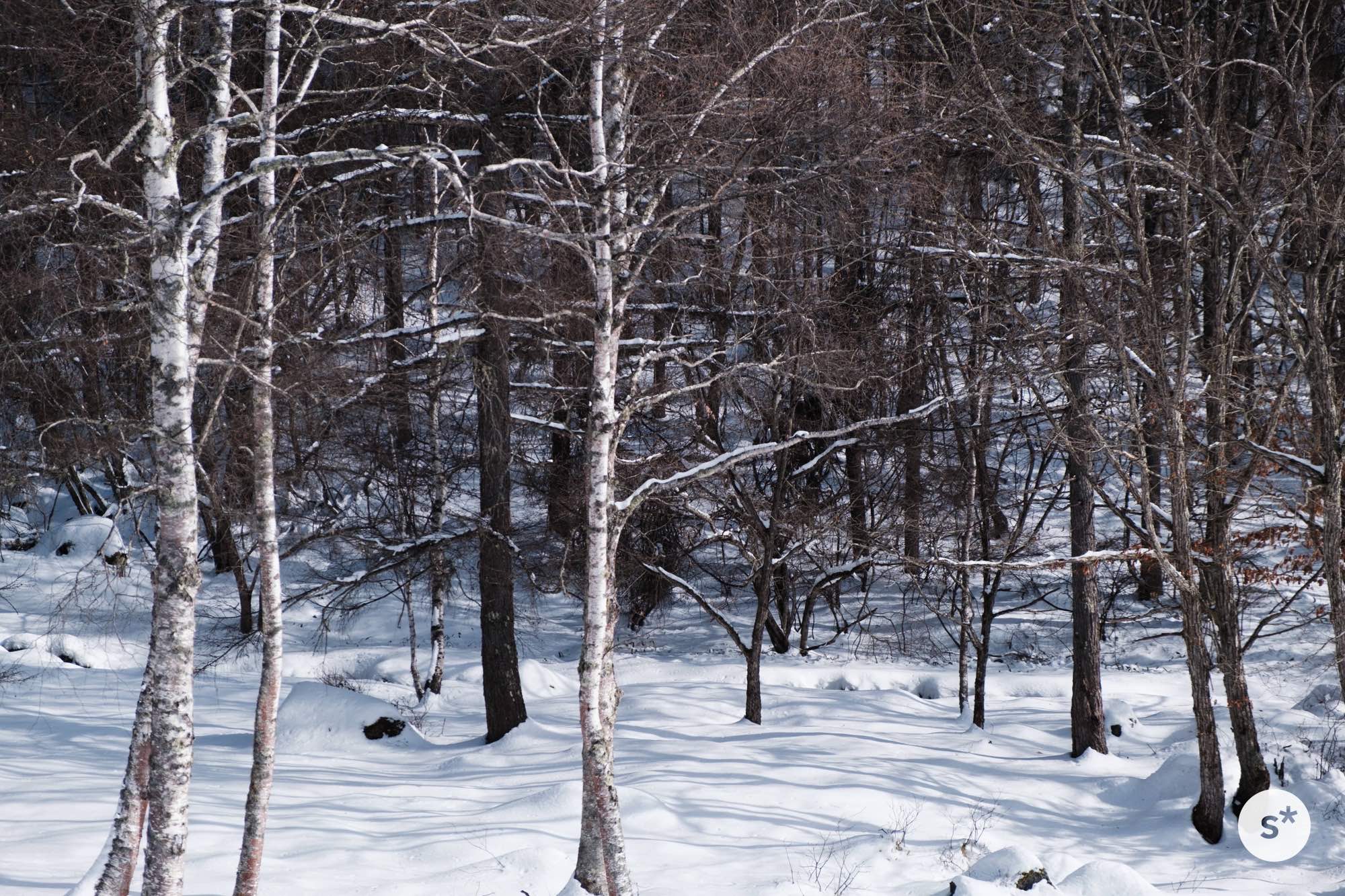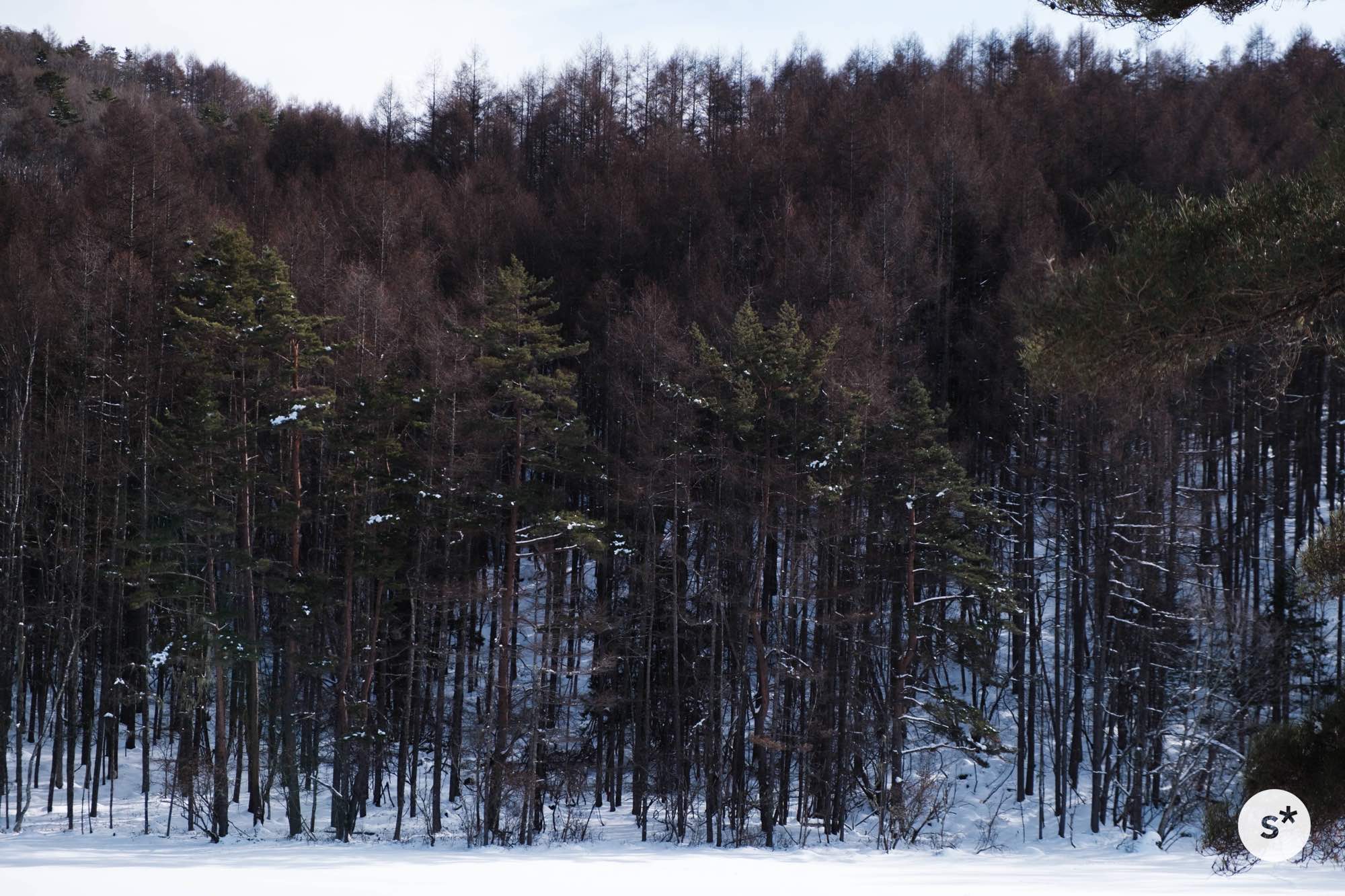 ここでの撮影はFUJIFILM X-T4、フィルムシミュレーションはいつものようにクラシッククロームです。カラマツの描写に深みがあり、雪とのコントラストがきれいに出ていますね。撮って出しではなく、RAWで撮影してLightroomで現像しています。