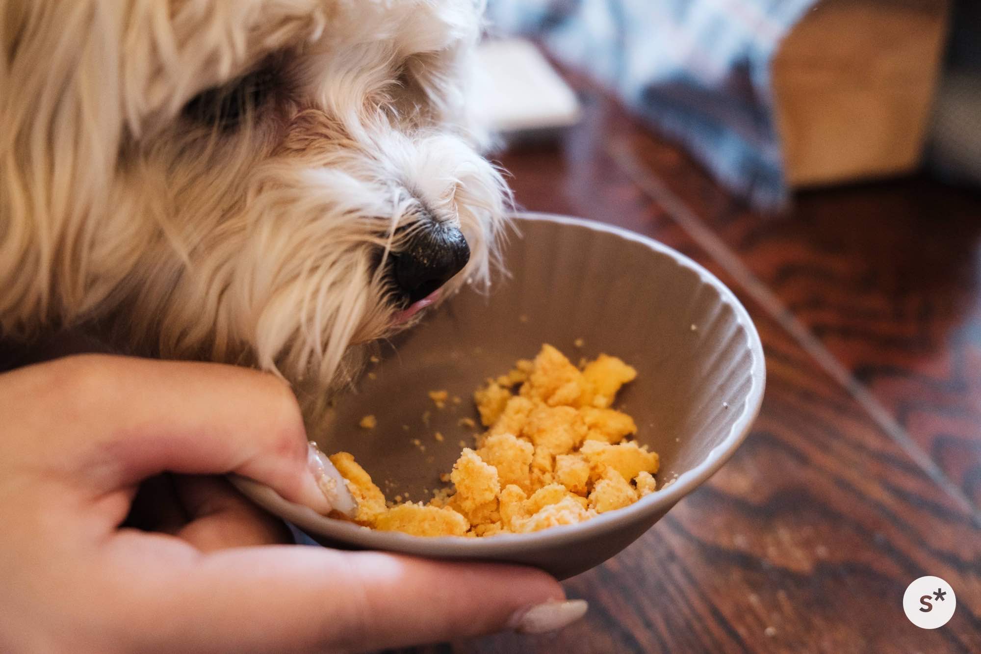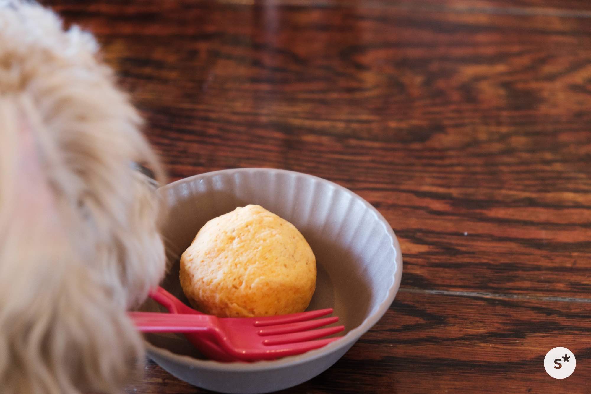 人間は信州牛のバーガーを、犬にはにんじんのマフィンをオーダーしました。