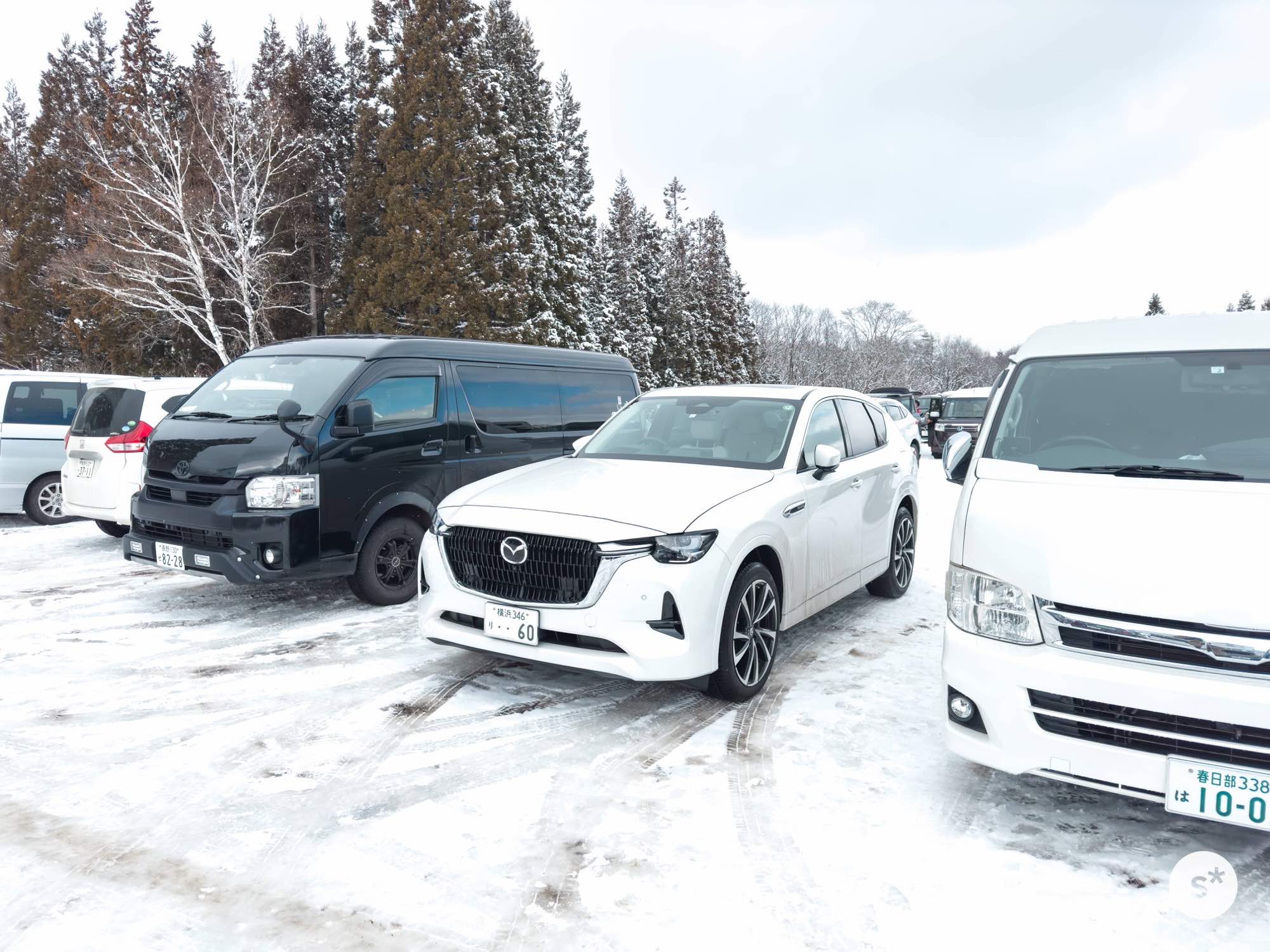 途中までの道には雪は積もっていなくてとても走りやすかったのですが、せっかくスタッドレスを履いた意味ないやんけ。と思ってたのですが、駐車場にはしっかり積もっていて意味ありました。
