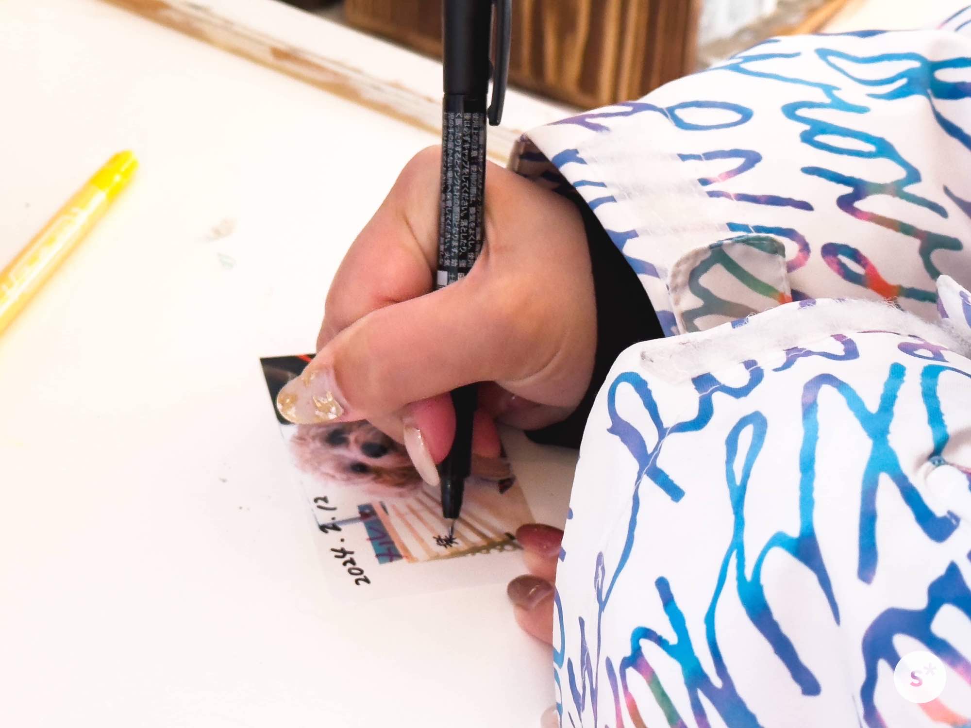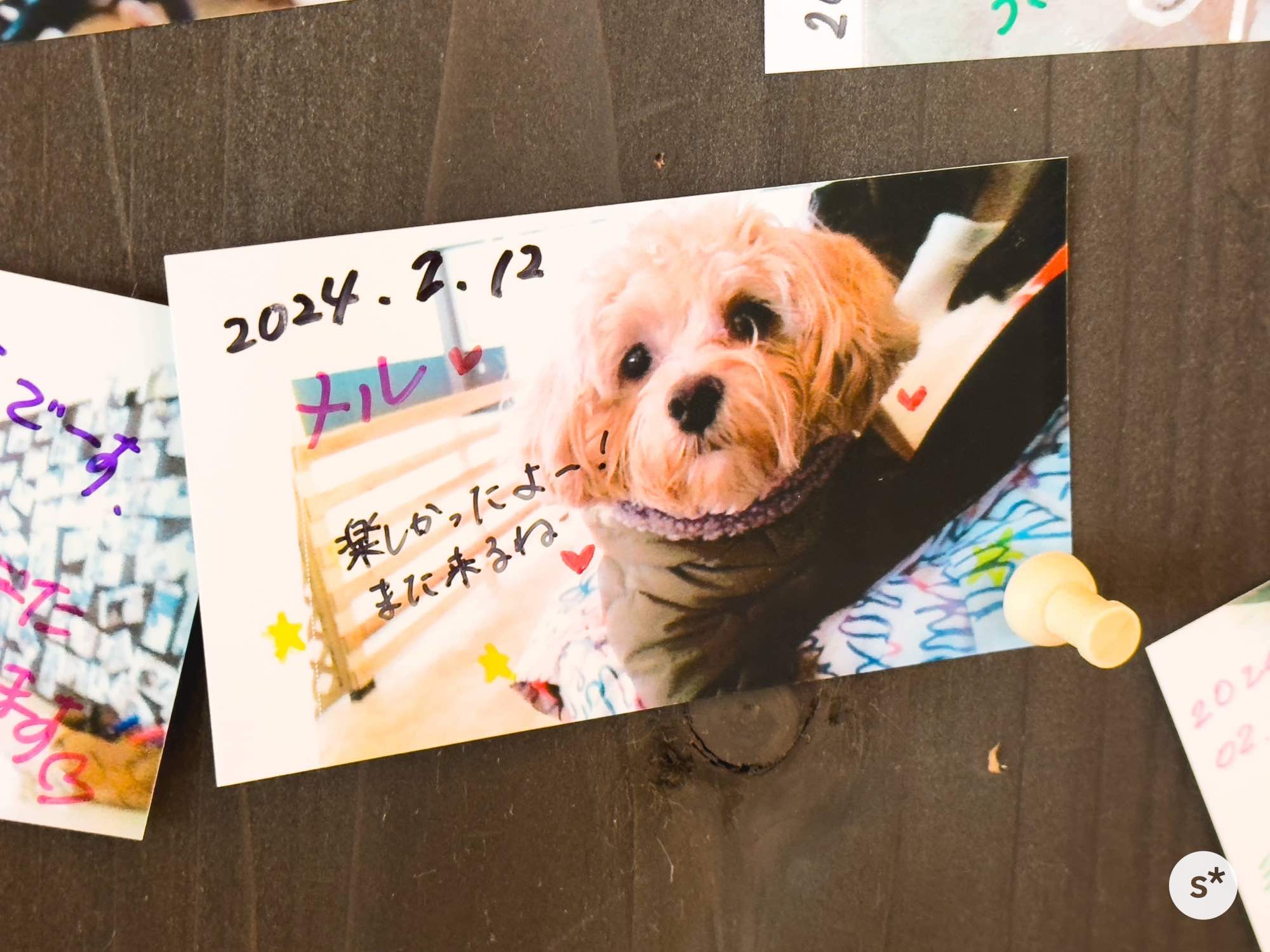 室内ドッグランにはチェキが置いてあり、自由に写真を撮って飾れるようになっていました。せっかくなので訪れた証を刻んでおきましたよ。