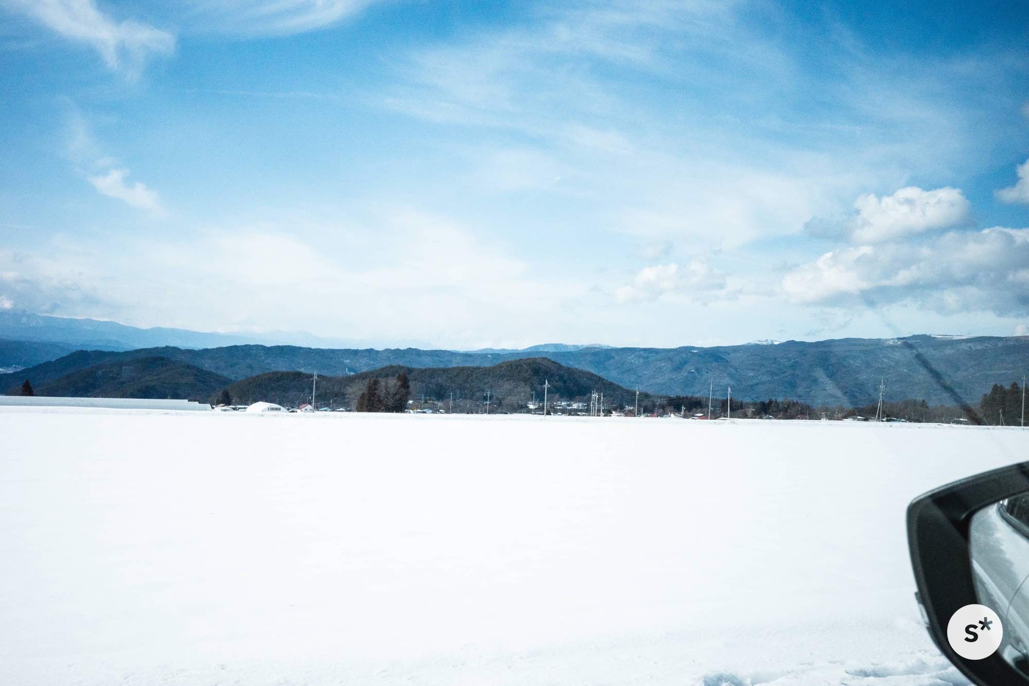 山の上にあるスキー場からは美しい景色を臨むことができます。これを見たくて冬の長野を選んだので、ちゃんと見ることができて本当によかったです。そして少し迷ったけれどここまでX-T4を連れてきてよかった。