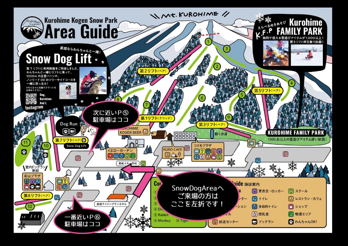 黒姫高原スノーパークでは「Snow Dog Area」と銘打って、第10・第11コースを犬OKとしています。第10コースはリードあり、第11コースはリードなしでOKなエリアとなっています。
