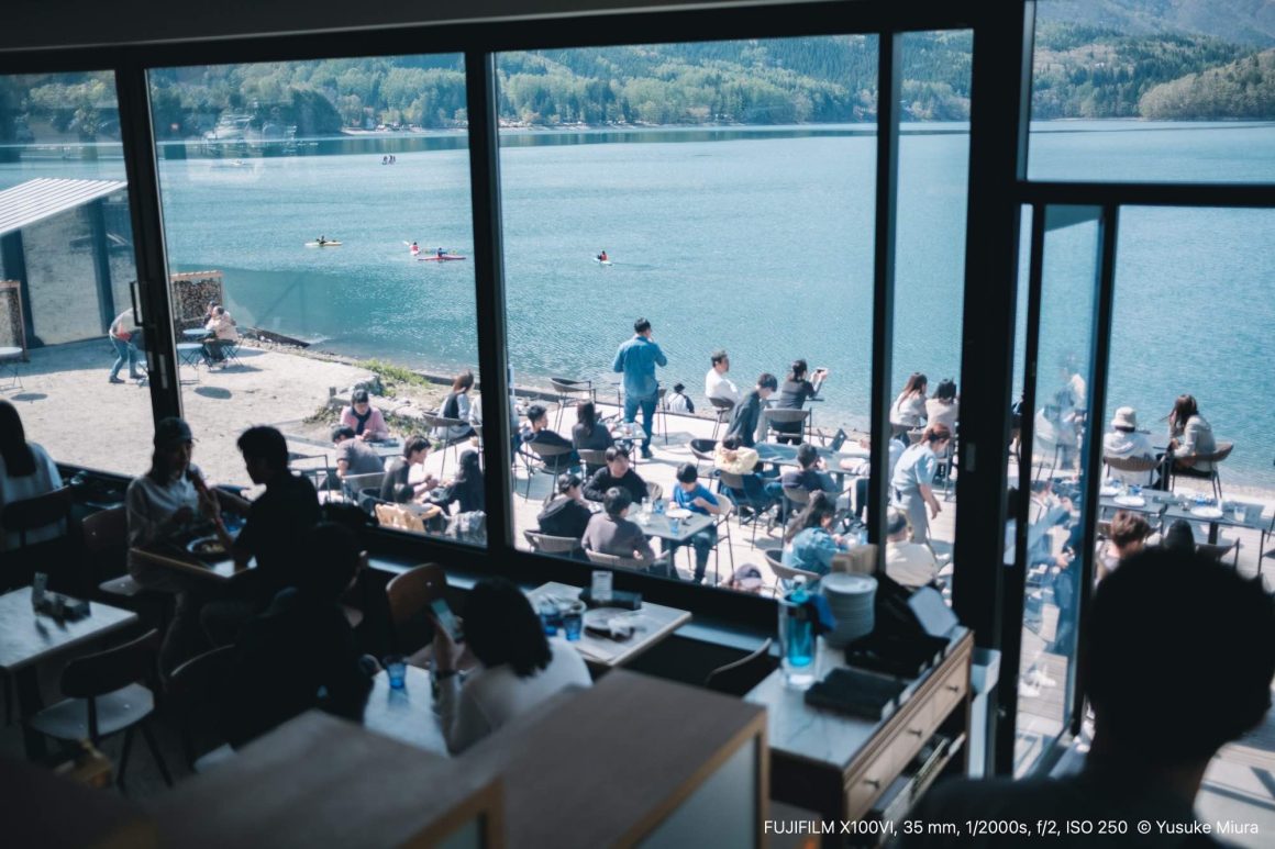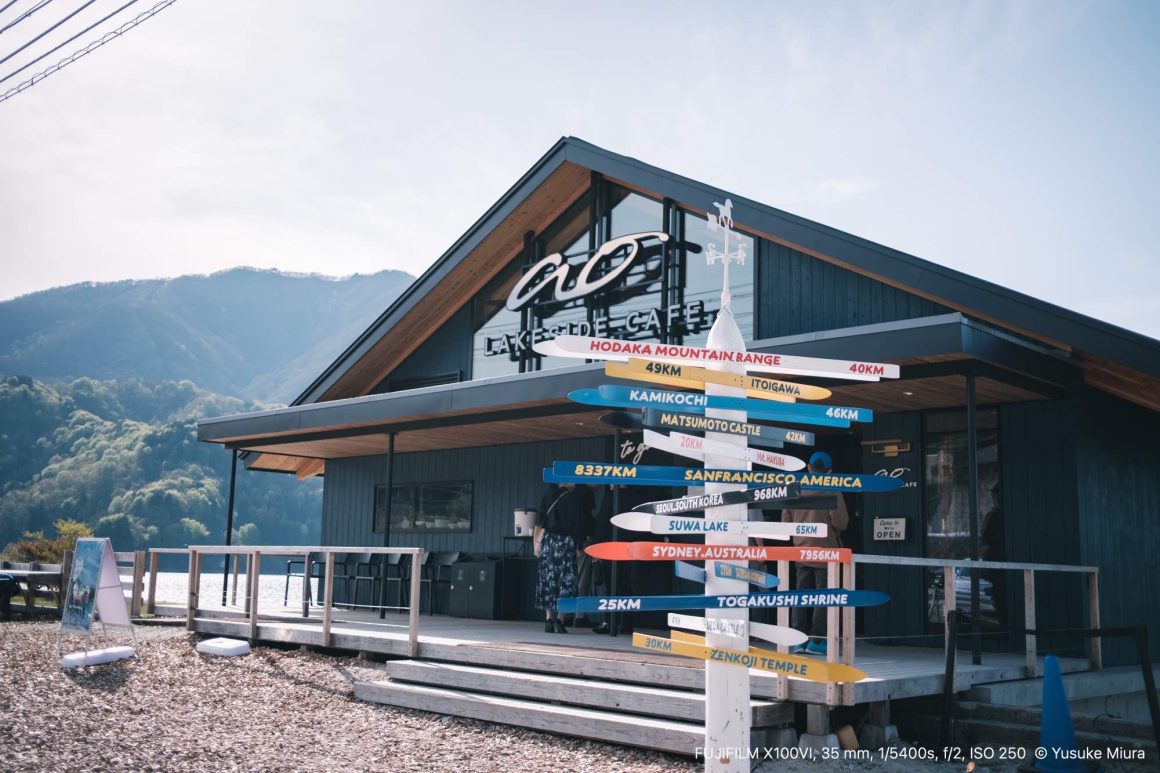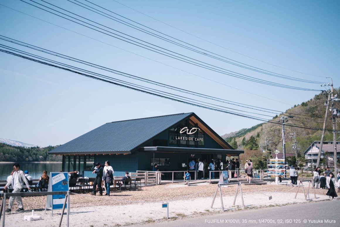 1時間ほど下道を運転して、青木湖に辿り着きました。目的地はこちらの「ao LAKESIDE CAFE」です。向かいの敷地に駐車場はたっぷりあるので、止められるかどうか心配せずに向かうことができますよ。