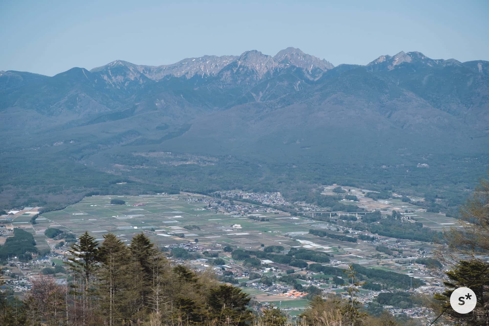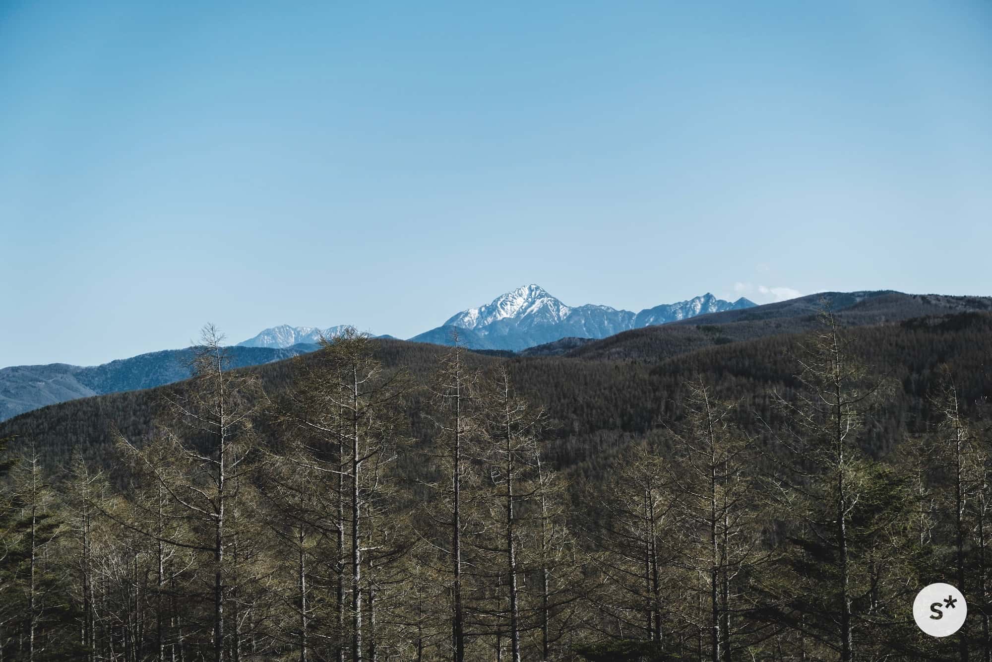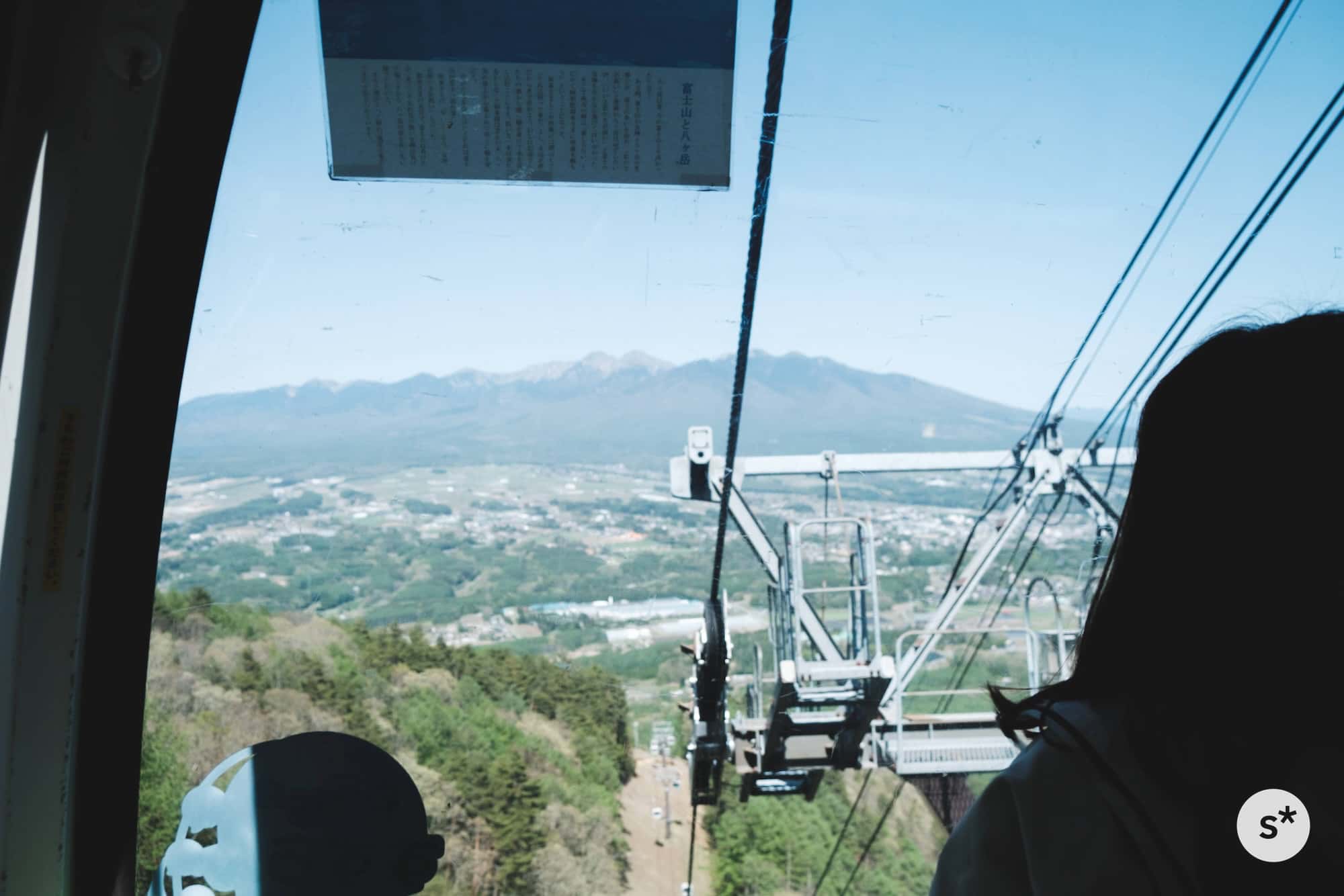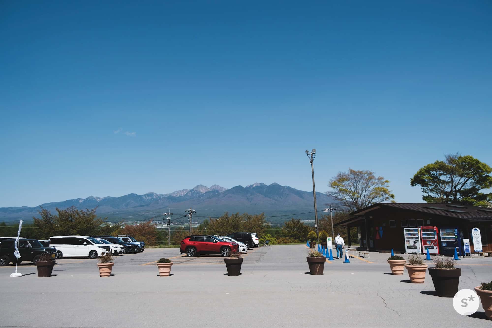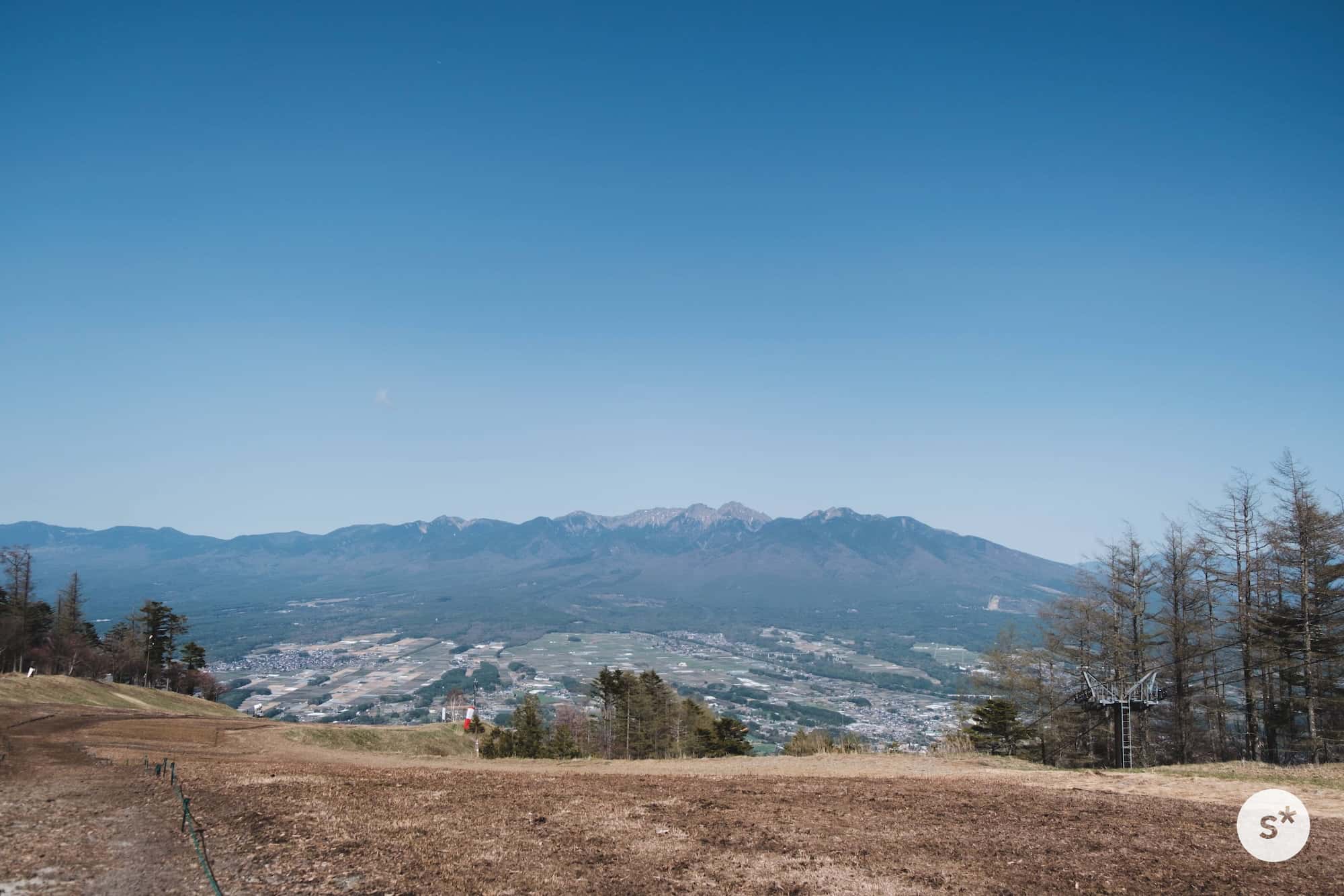 目の前に見えるのが八ヶ岳。雲ひとつない快晴で、こんなパノラマビューを臨むことができました。やっぱり高いところに来ると気持ちいいですね〜