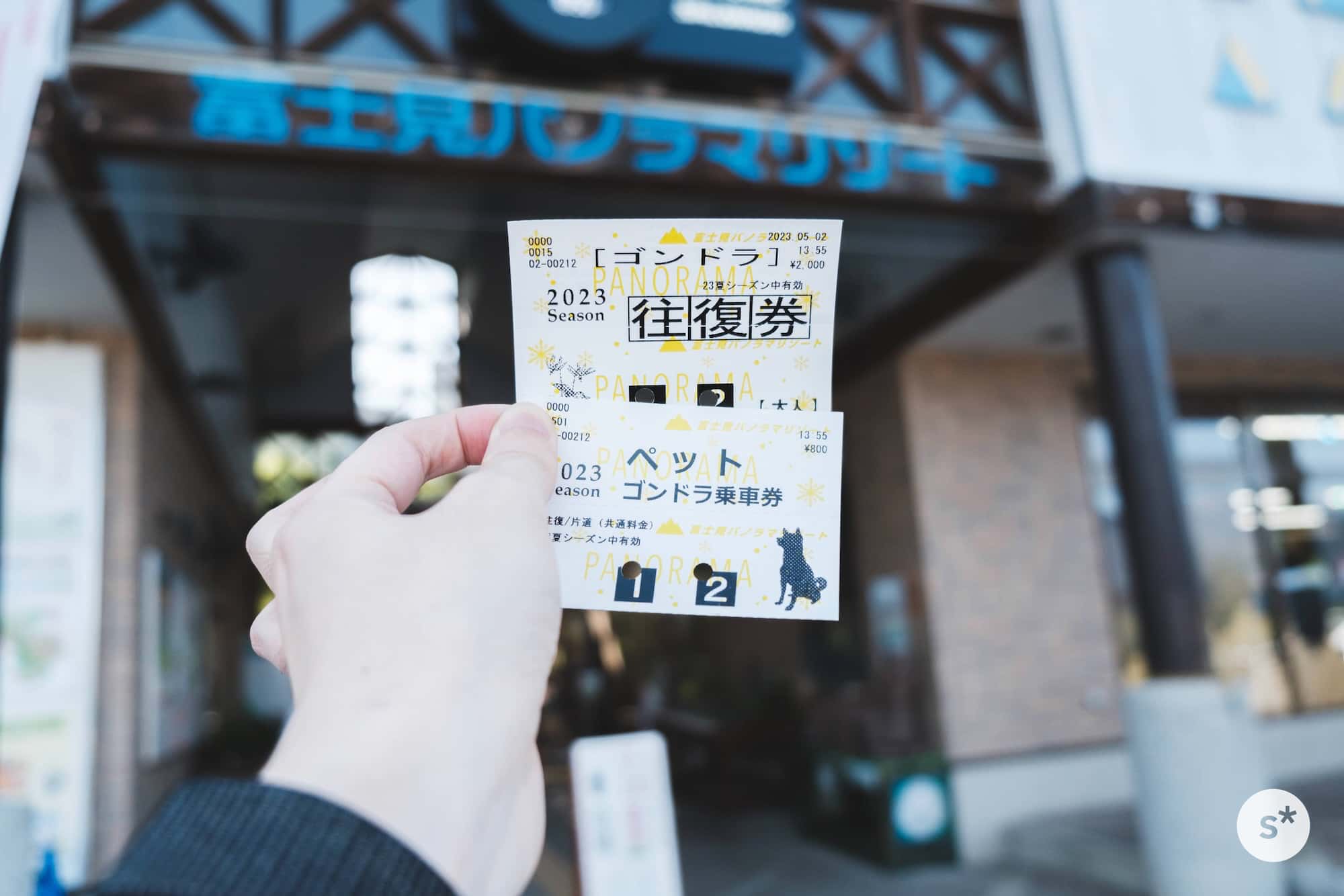駐車場の目の前に大きな建物があり、そこでチケットを買います。ゴンドラの往復券は大人1名あたり2,000円(税込)、ペットの乗車券は片道・往復共に1頭あたり800円(税込)です。