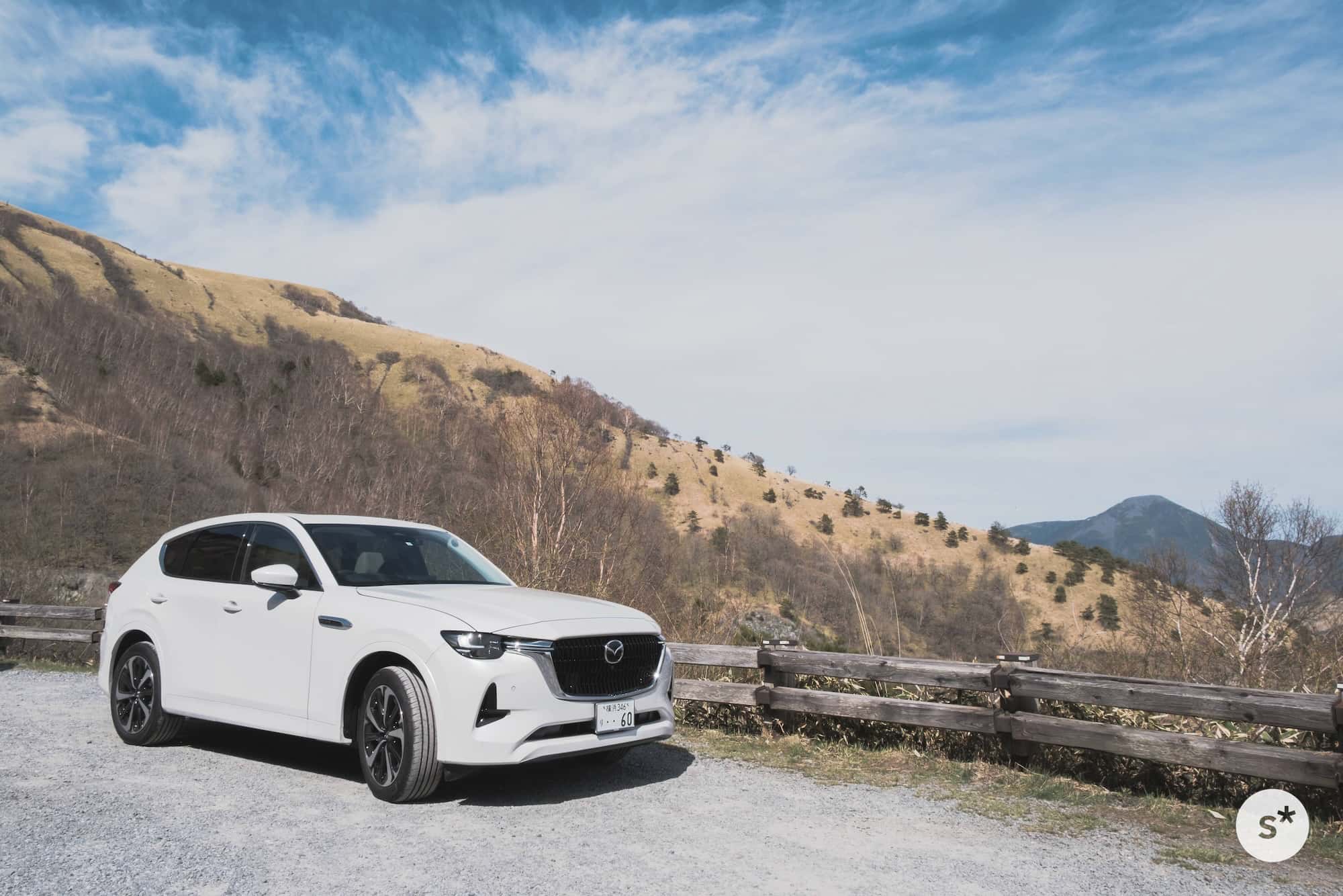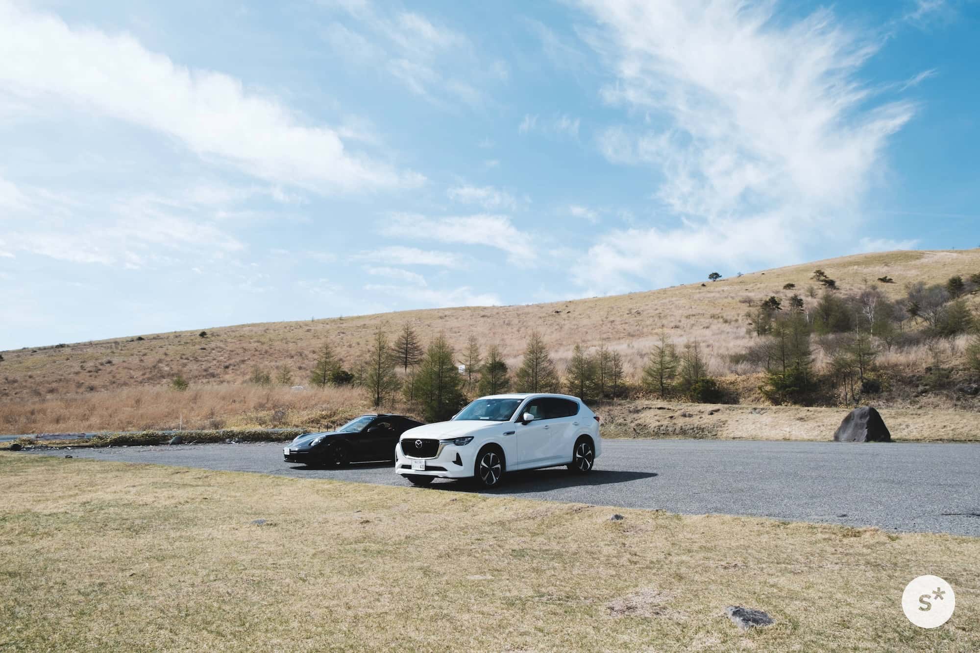 車がいないスペースがあったので、CX-60を止めて撮影会をやりました。青空の感じがすごくよかった。