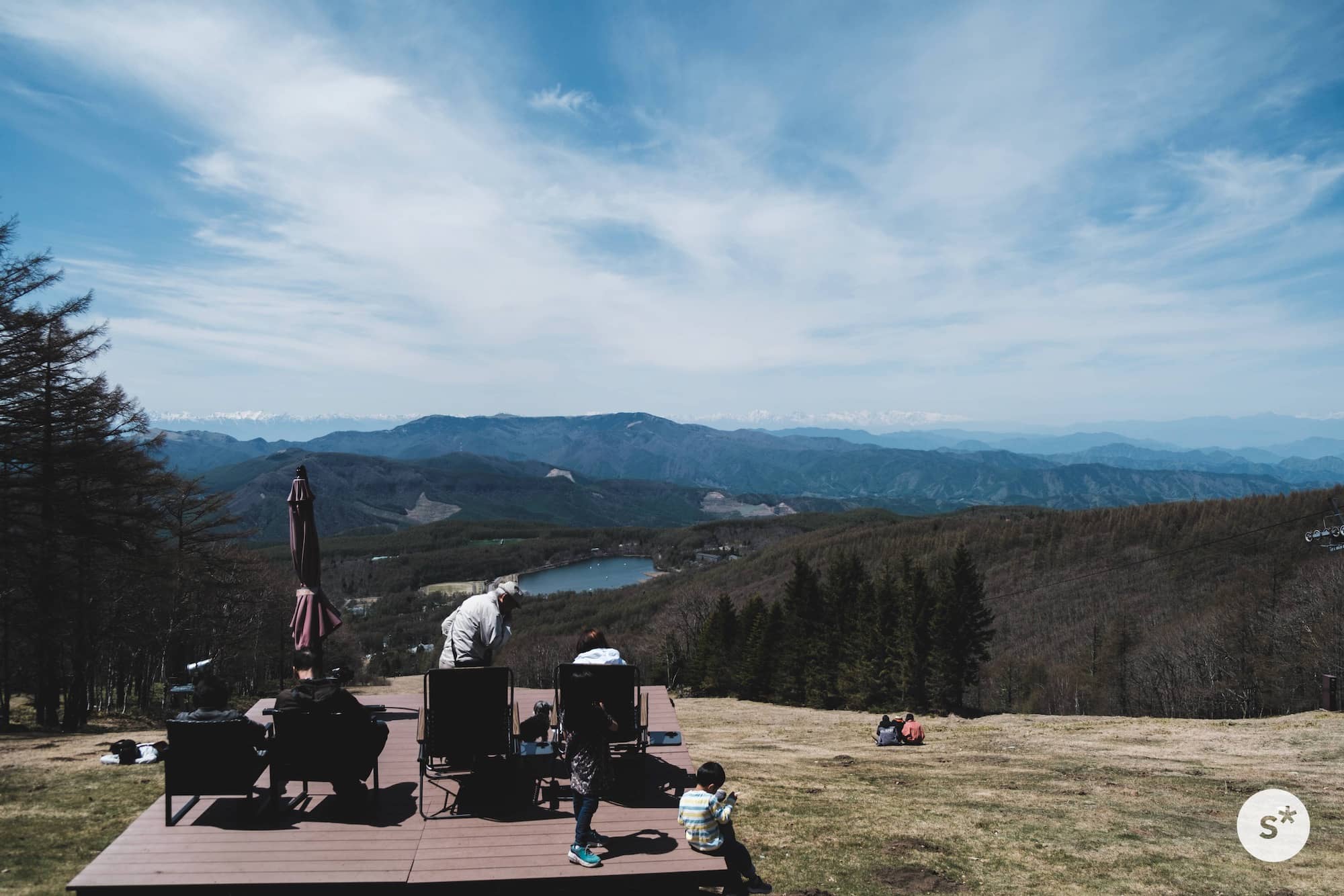 あまり長居はしなかったけれども、標高1,830mのそこには心が打たれる景色が広がっていました。眼下の女神湖、遠くに見える北アルプス、そしてくつろぎながらそれらを眺められるテラス。